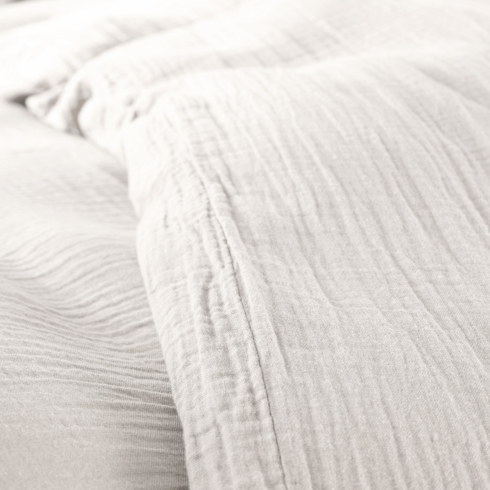 Créez une atmosphère lumineuse et épurée dans votre chambre avec cette parure de lit en gaze de coton blanc légèrement gaufrée. Douceur, élégance et confort se réunissent pour sublimer vos nuits et votre décoration.