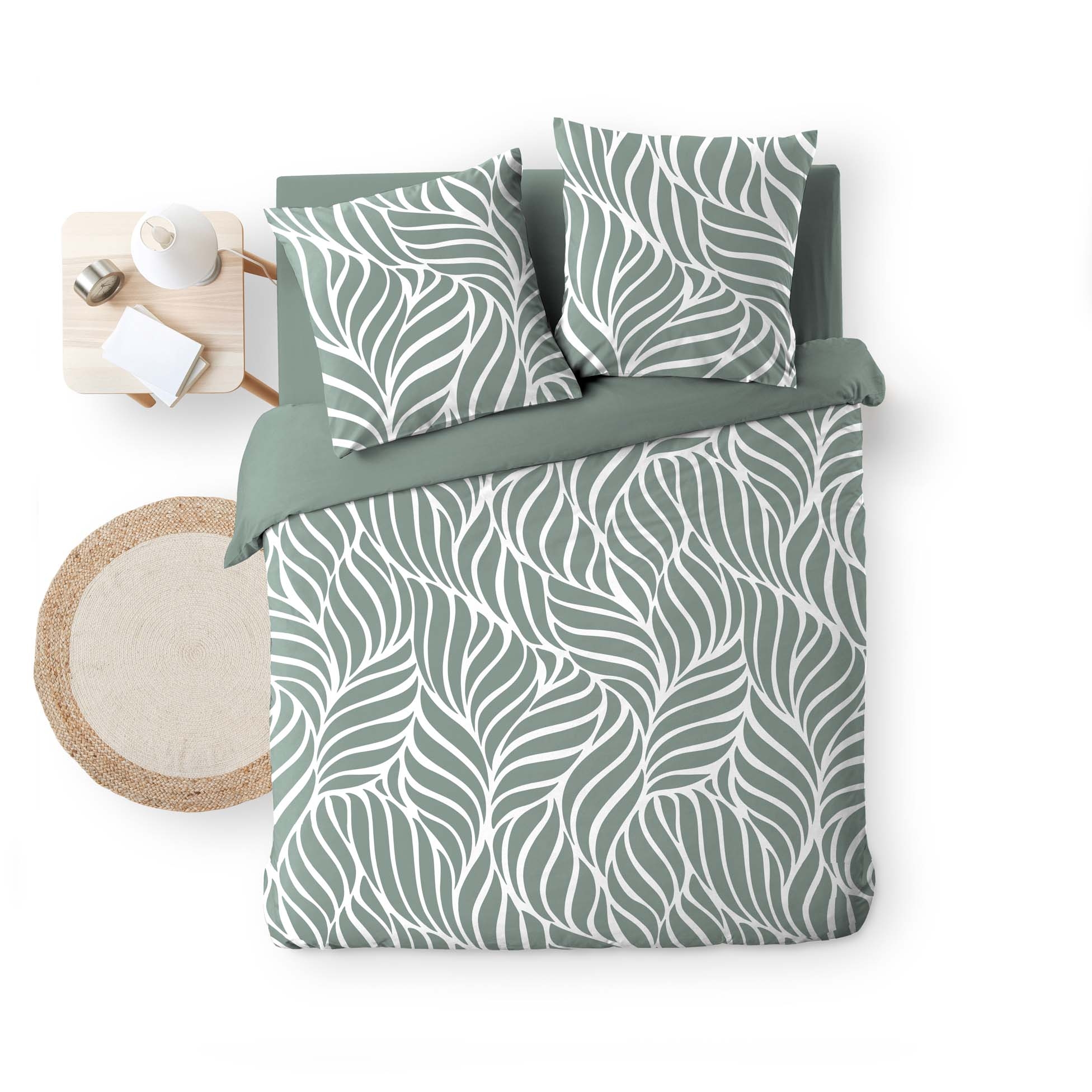 Housse de couette 240 x 220 cm imprimée 57 fils – MORGANE Sauge – 2 taies incluses