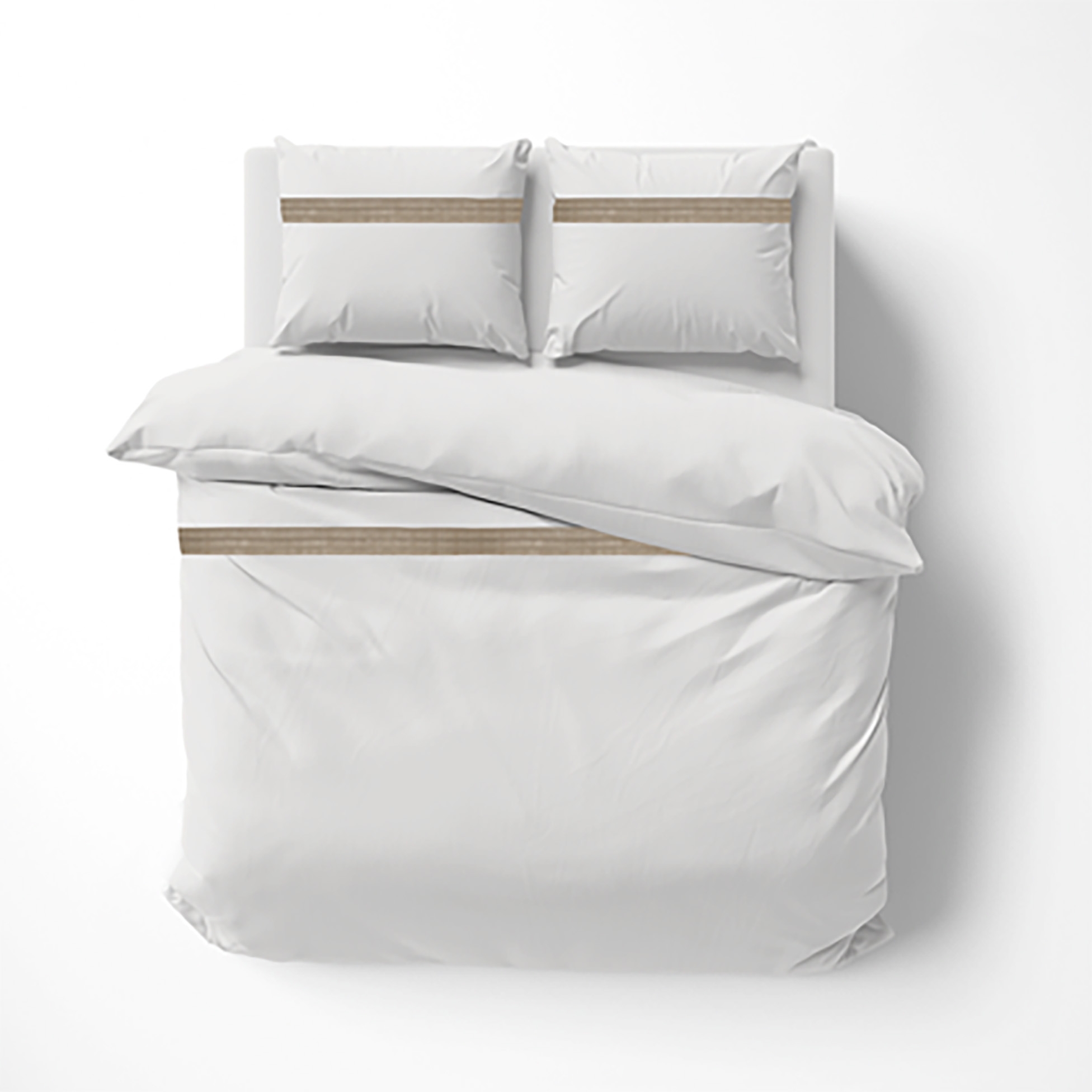 Housse de couette 260 x 240 cm coton 57 fils LALY + 2 taies – Blanc avec bande lin naturel