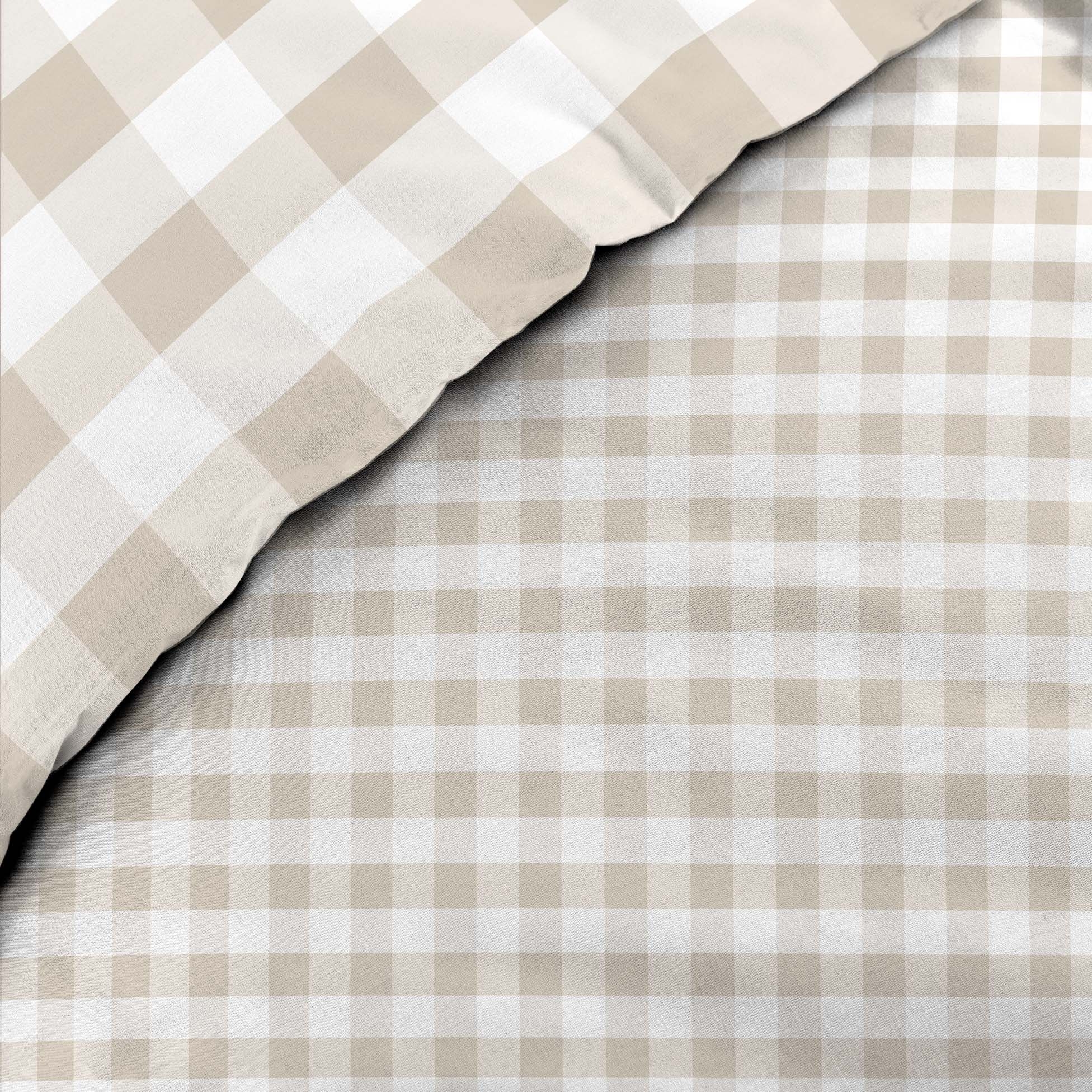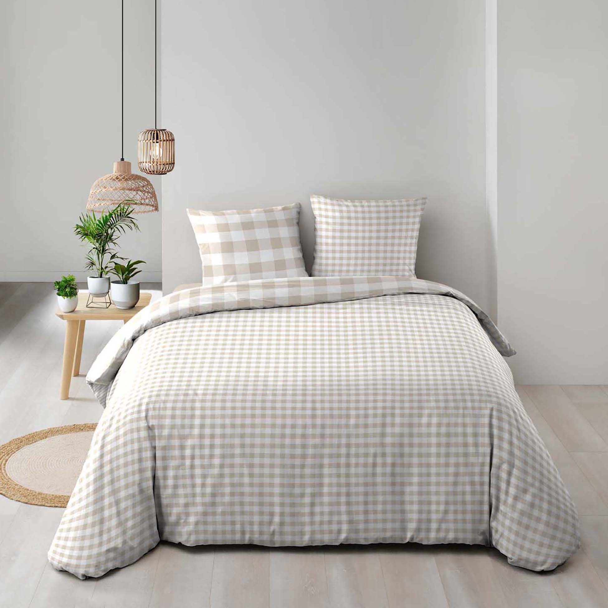 La housse de couette VICTOIRE Naturel séduit par son motif à carreaux délicat et son coloris naturel, doux et lumineux. Son imprimé réversible permet de varier les ambiances, pour une chambre élégante et apaisante, au style intemporel et chaleureux.