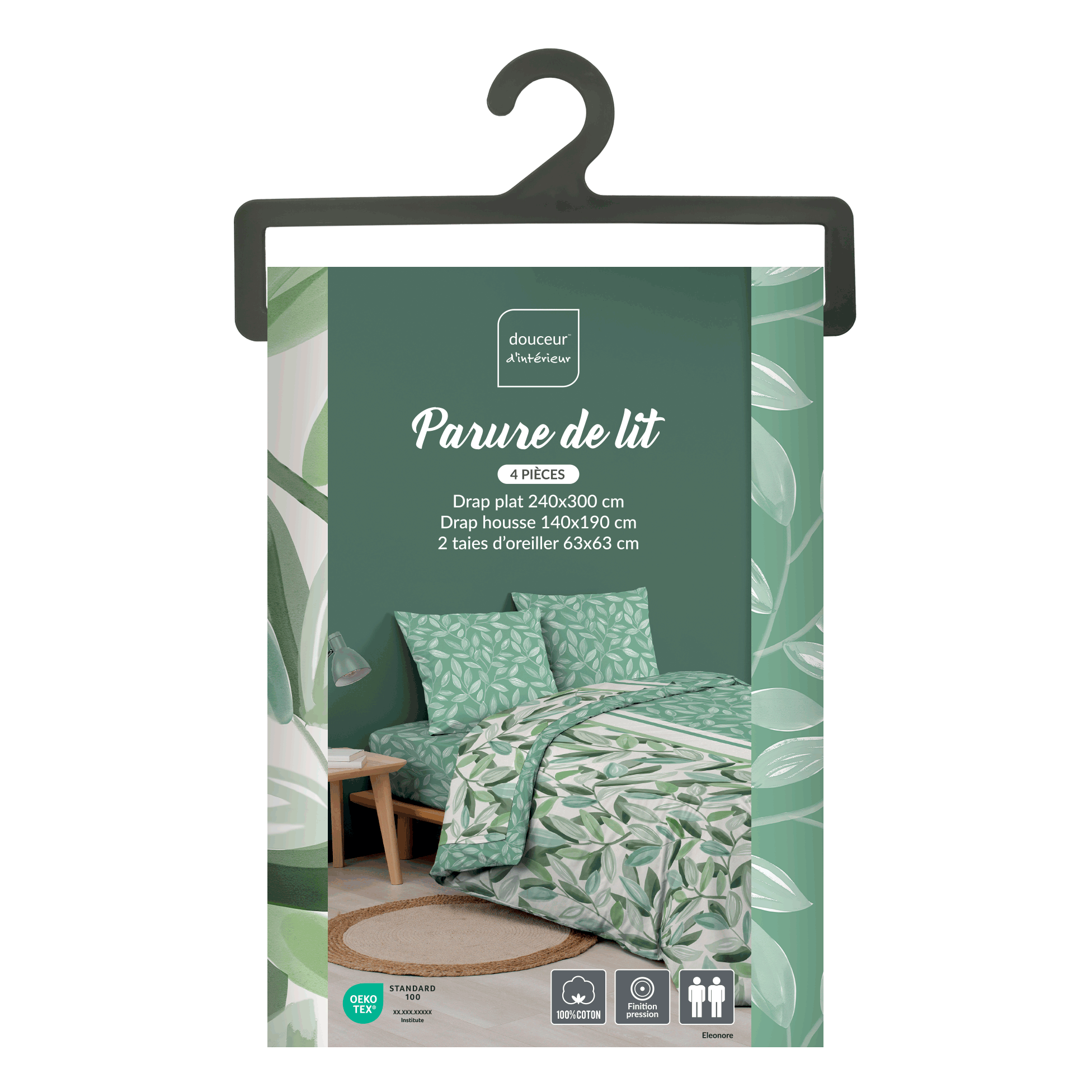 Parure de draps 4 pièces réversible – 100 % coton – Imprimé 42 fils/cm² Eleonore