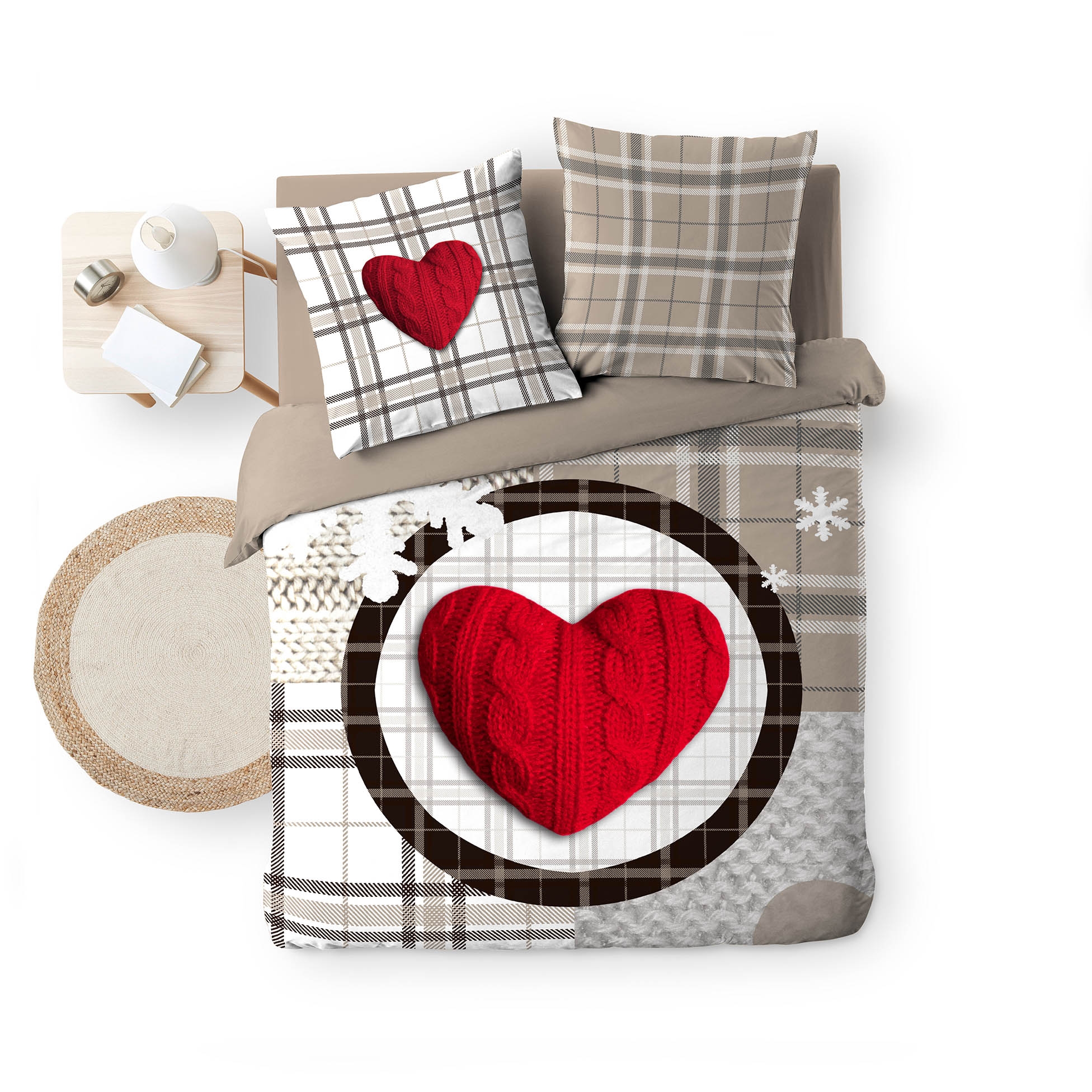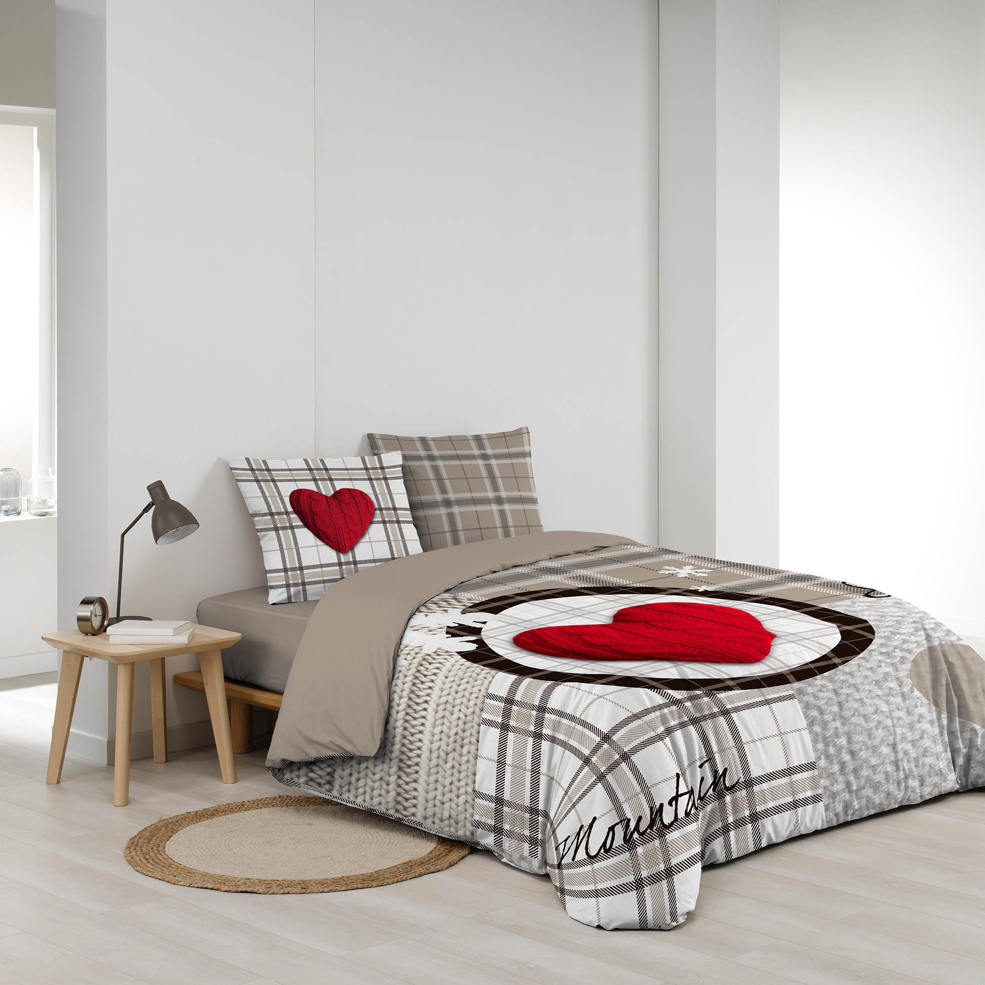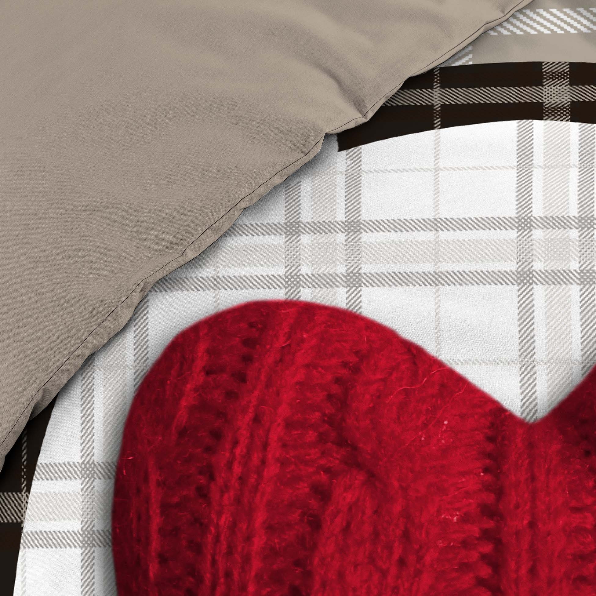 Plongez dans une ambiance chaleureuse et cocooning avec cette parure de lit Love Mountain, pensée pour apporter confort et style à votre chambre. Son grand cœur rouge effet tricot, placé au centre de la housse de couette, contraste avec un fond à carreaux et des touches de motifs montagne pour un esprit chalet douillet et authentique. Une parure idéale pour réchauffer vos nuits d’hiver tout en habillant votre chambre d’une décoration moderne et réconfortante.