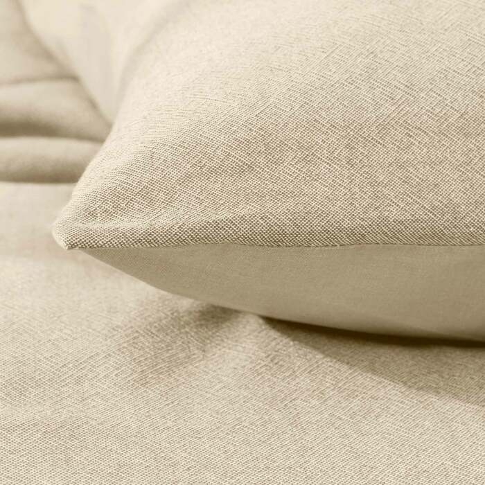 Parure de lit 3 pièces 240 x 220 cm en fils teints lavés unis – Meline Sable (60 fils)