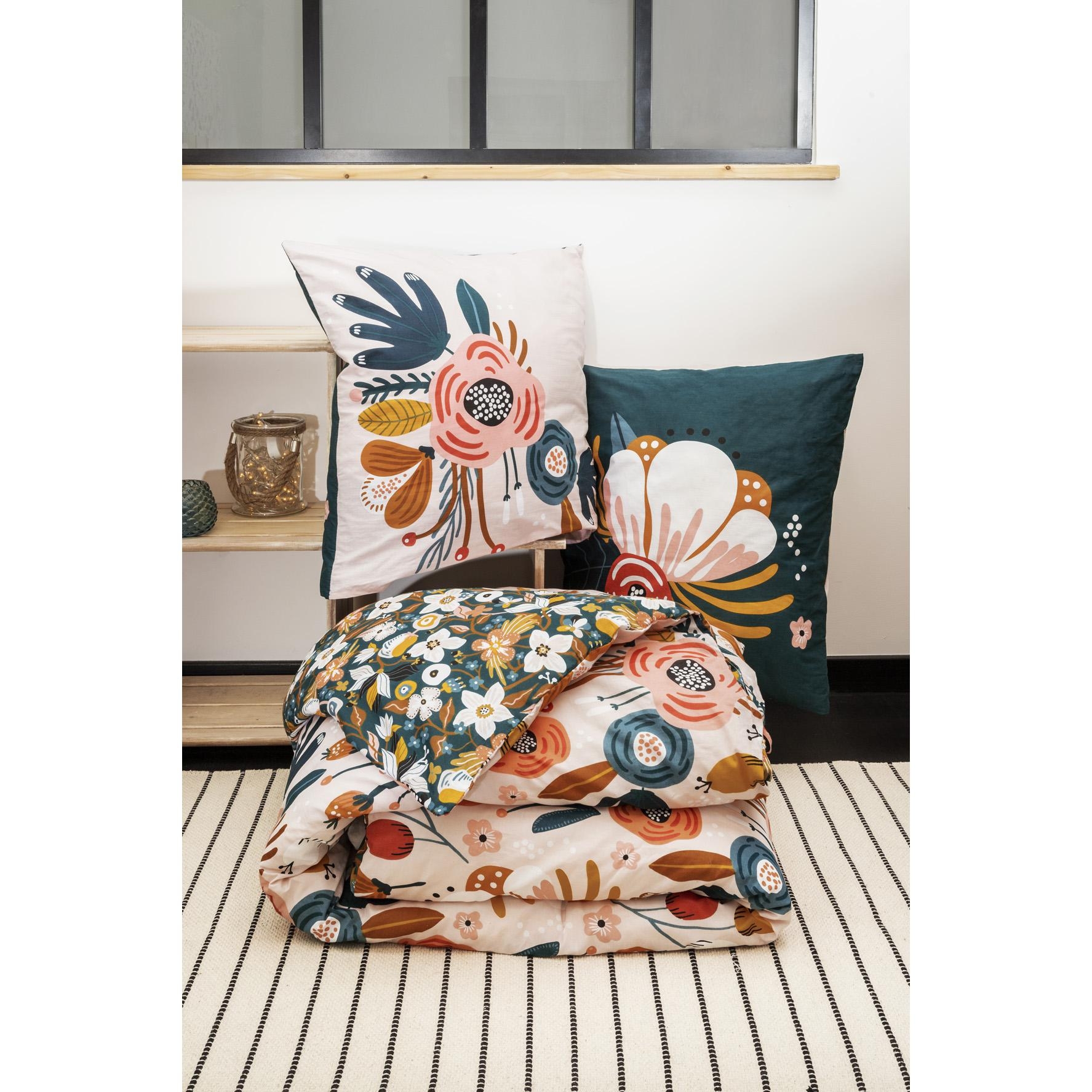 Housse de couette + 2 taies coton imprimé 240 x 220 cm champetre