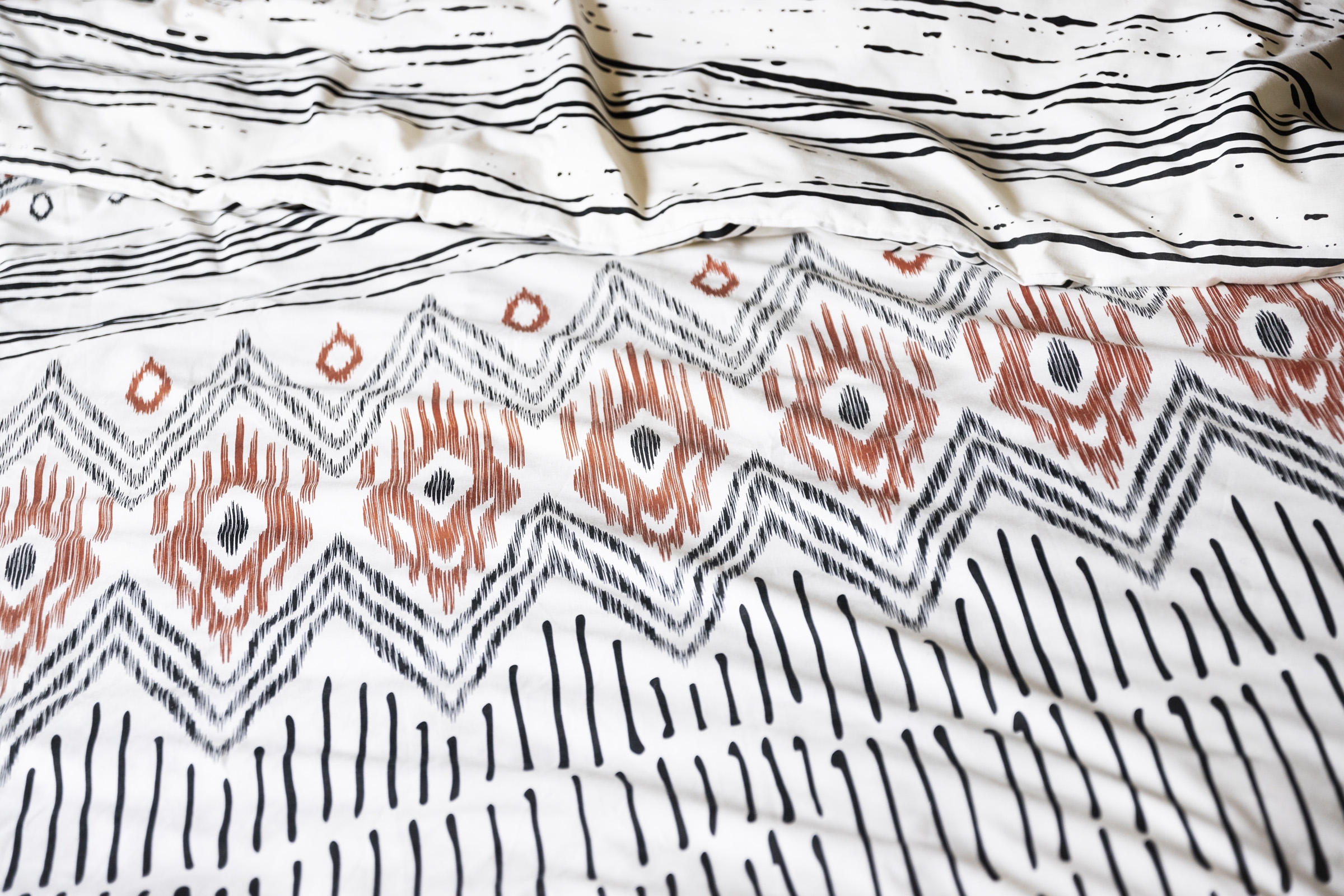 - Motif : ETHNIC – Graphique noir + touches terracotta / ocre
