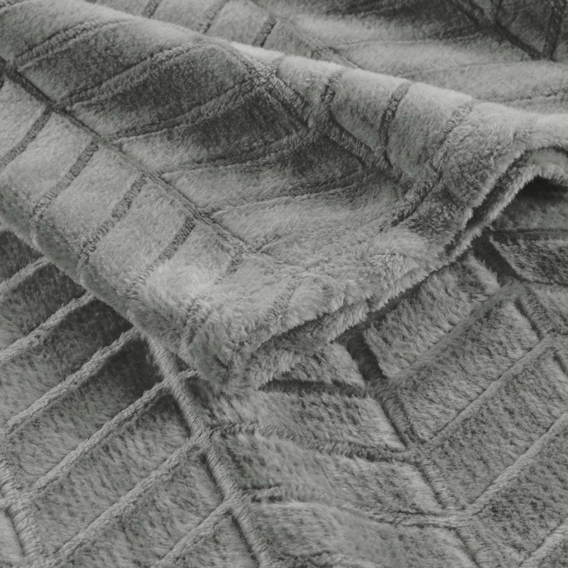 Plaid 180 x 220 cm en flanelle relief uni – Modèle ARYA – Coloris Gris