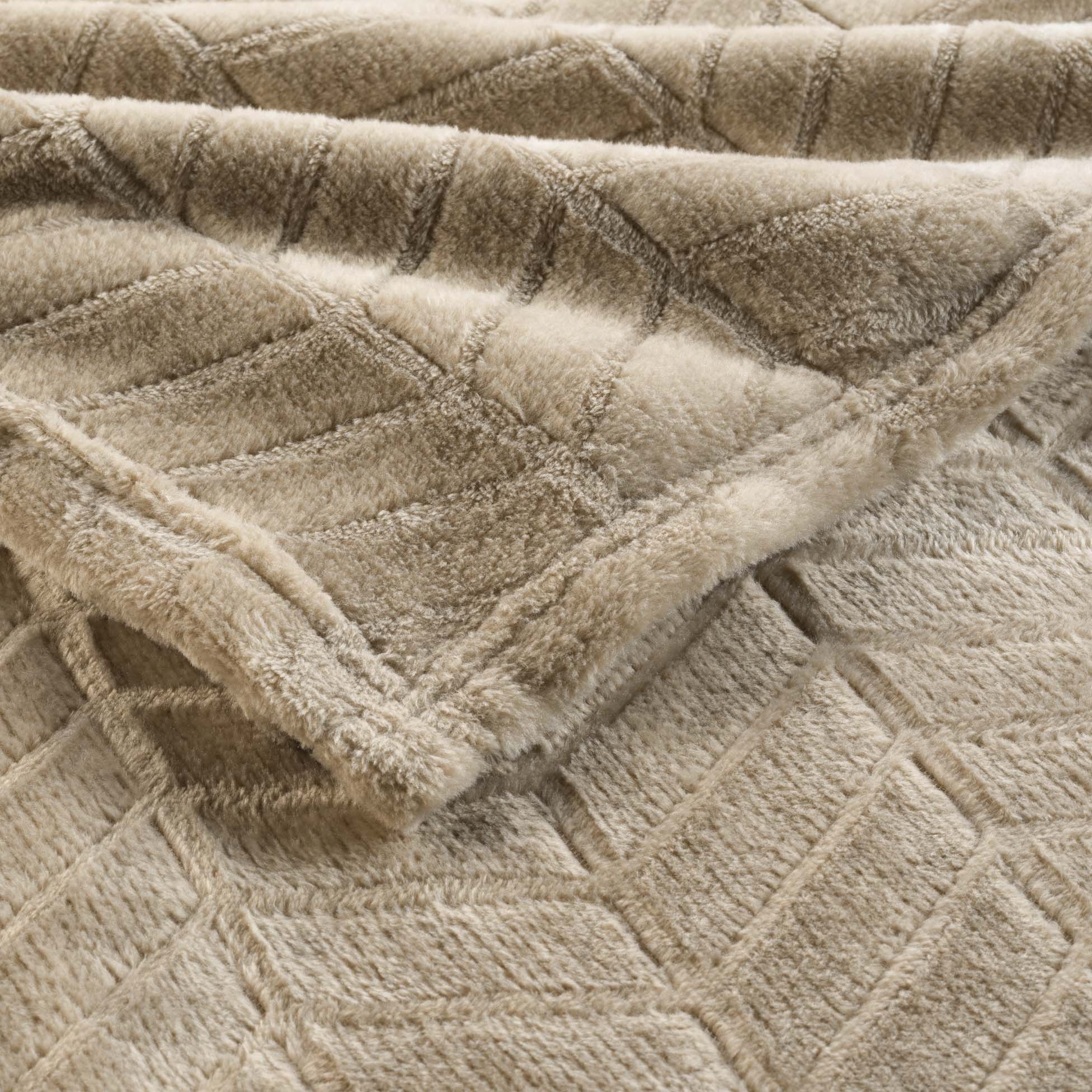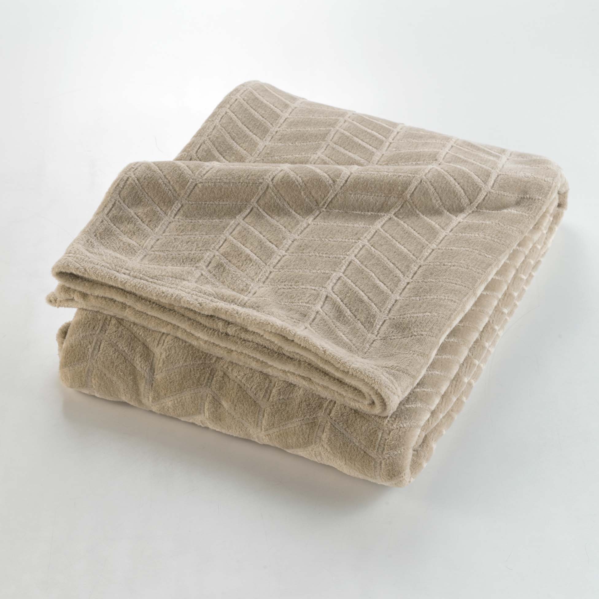 Plaid 180 x 220 cm en flanelle relief uni – Modèle ARYA – Coloris Taupe