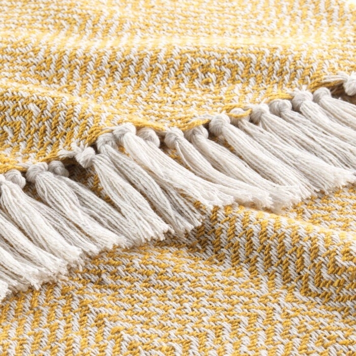 Plaid a franges 125 x 150 cm coton tisse louisette Jaune