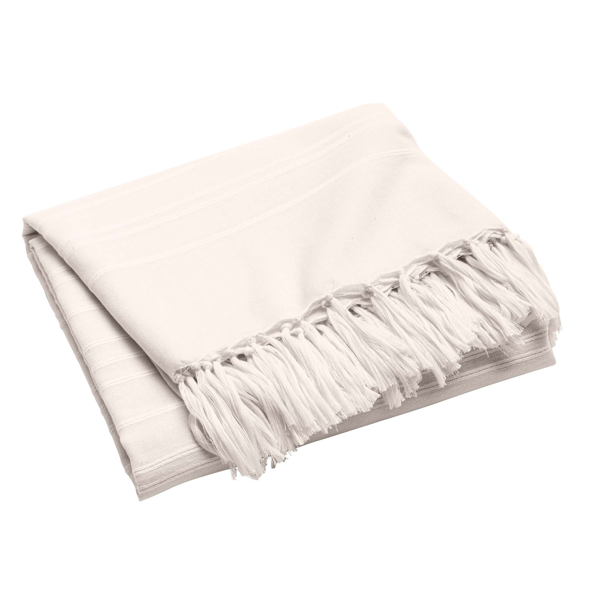 Plaid LILIA 240 x 220 cm – 100 % coton – Plaid à franges naturel