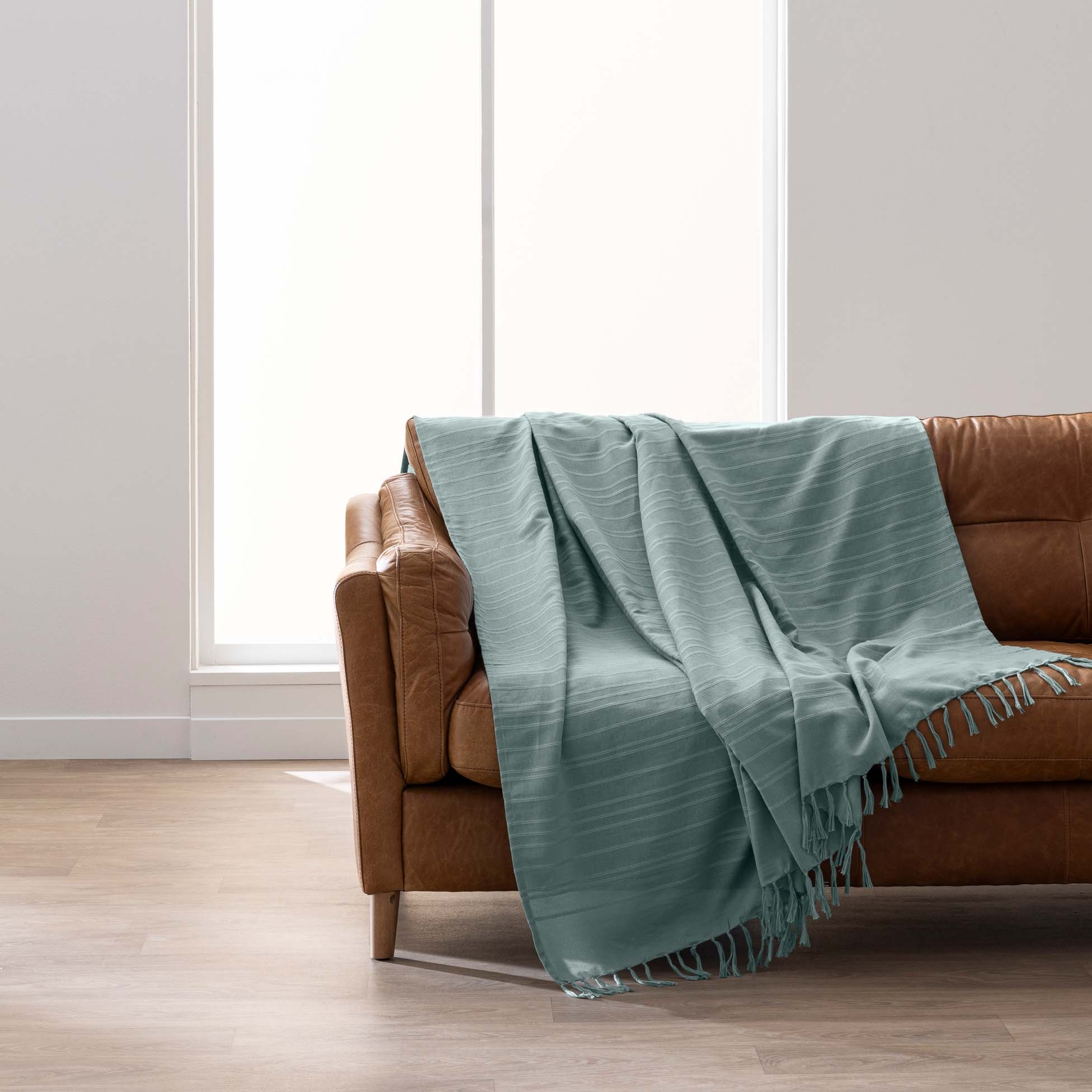 Plaid LILIA 240 x 260 cm – 100 % coton – Plaid à franges Sauge