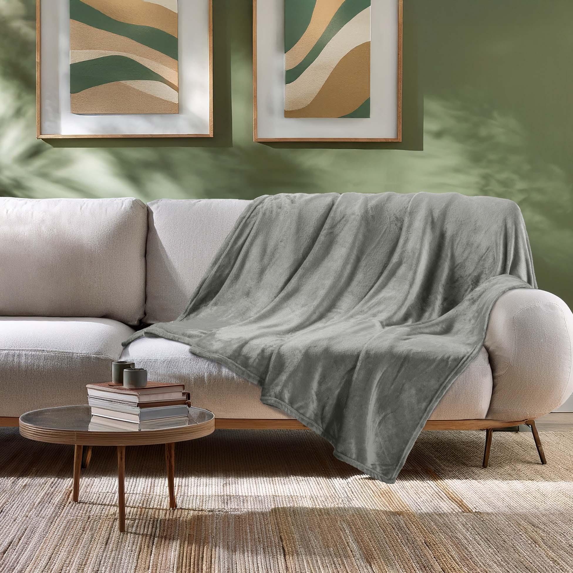 Plaid ultra doux 180 x 220 cm – Flanelle Unie Flanou Gris