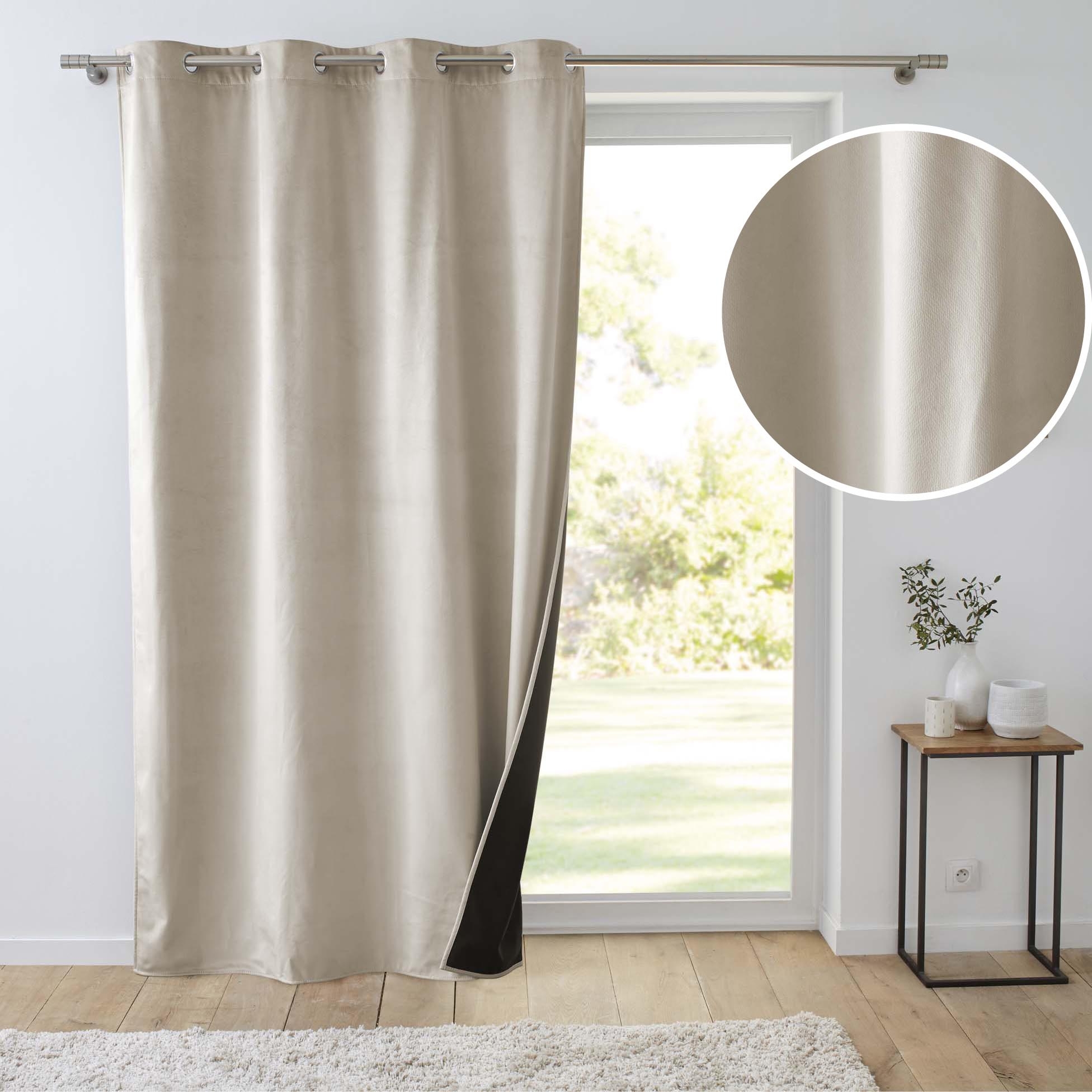 Rideau Isolant Thermique à Œillets 140 x 260 cm – Velours Relief – Polarchic Sable