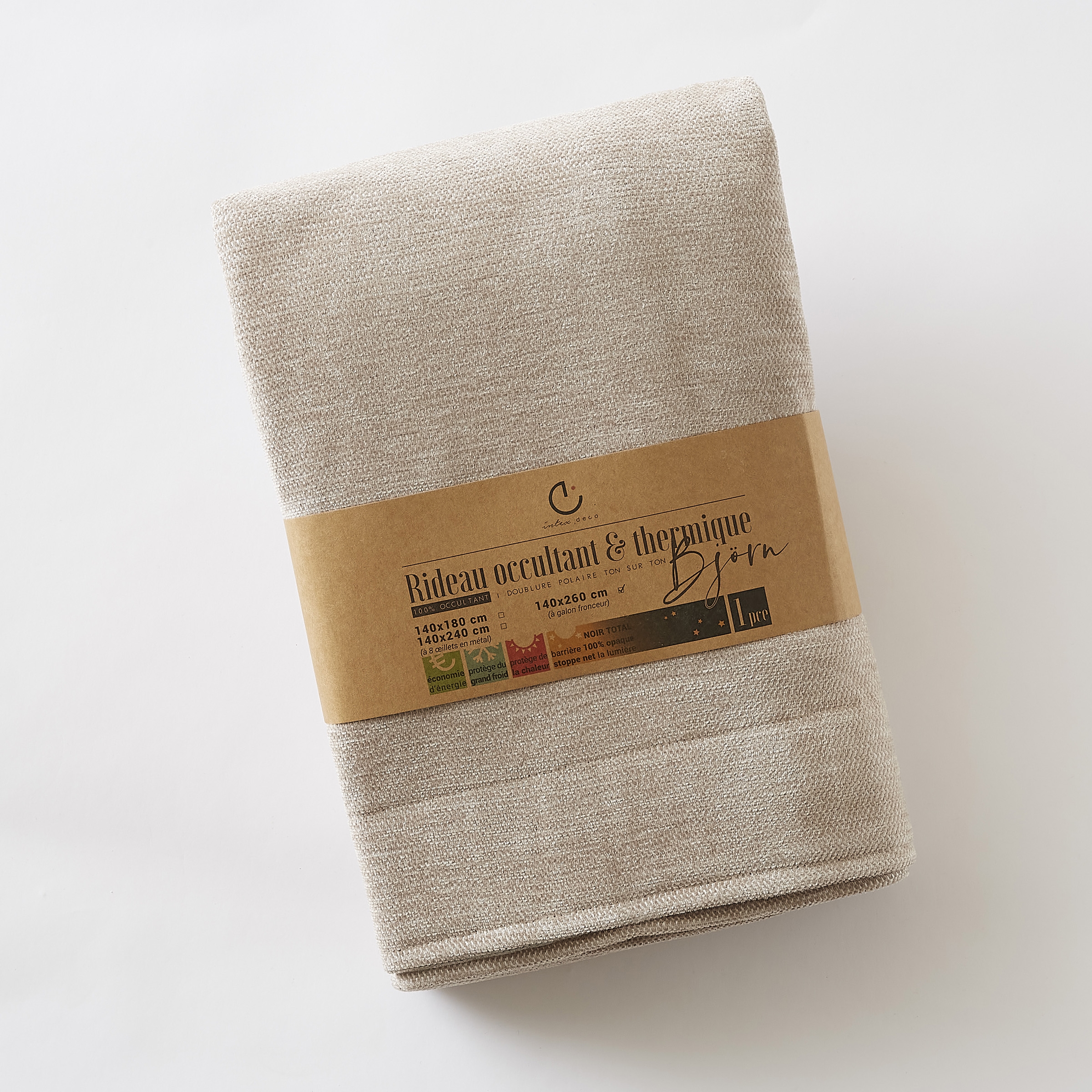 Rideau occultant 140 x 260 cm – Galon fronceur couture invisible – Blackout & Polaire – BJORN Beige