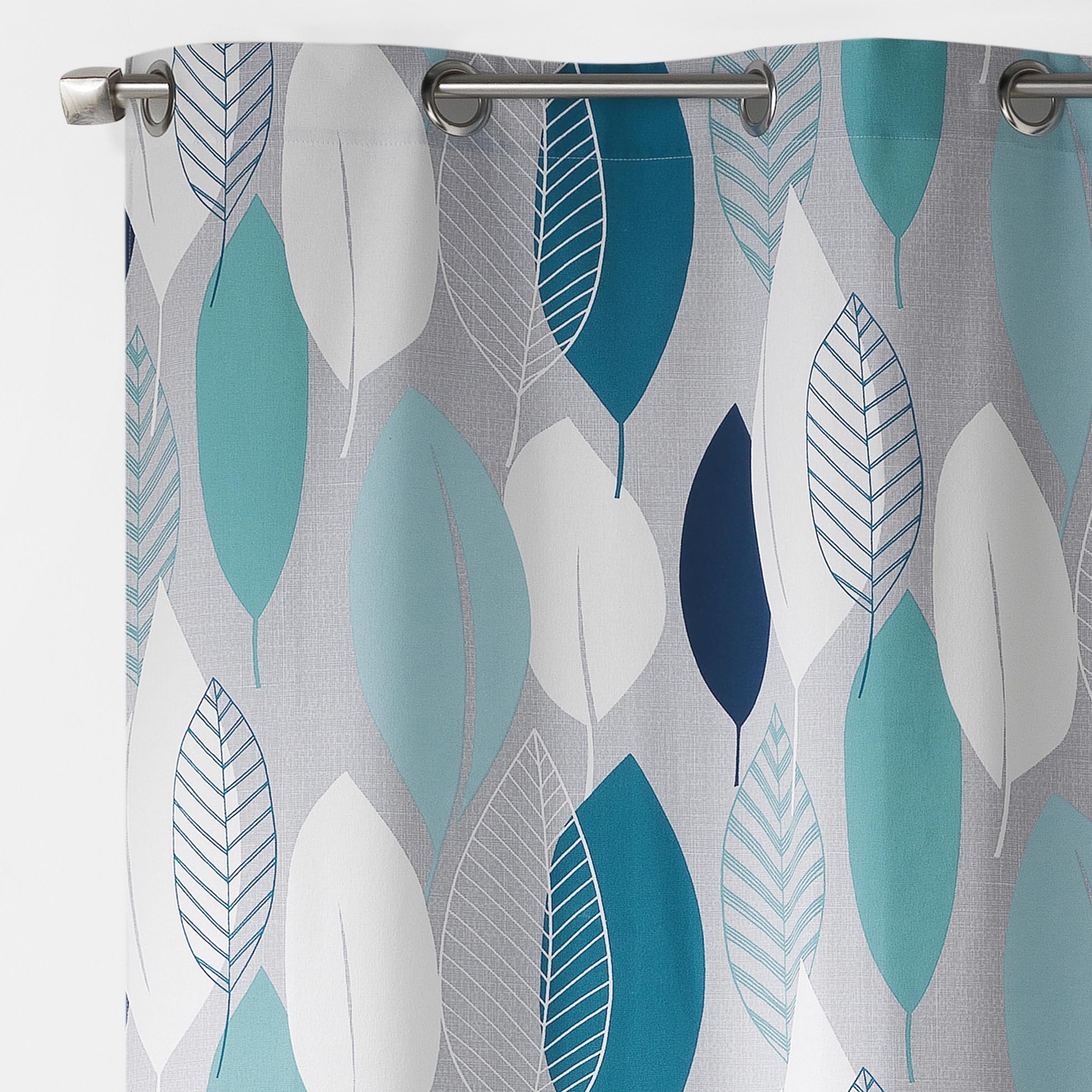 Lot de 2 rideaux à œillets – 140 x 240 cm – coton tamisant imprimé Leafy – bleu