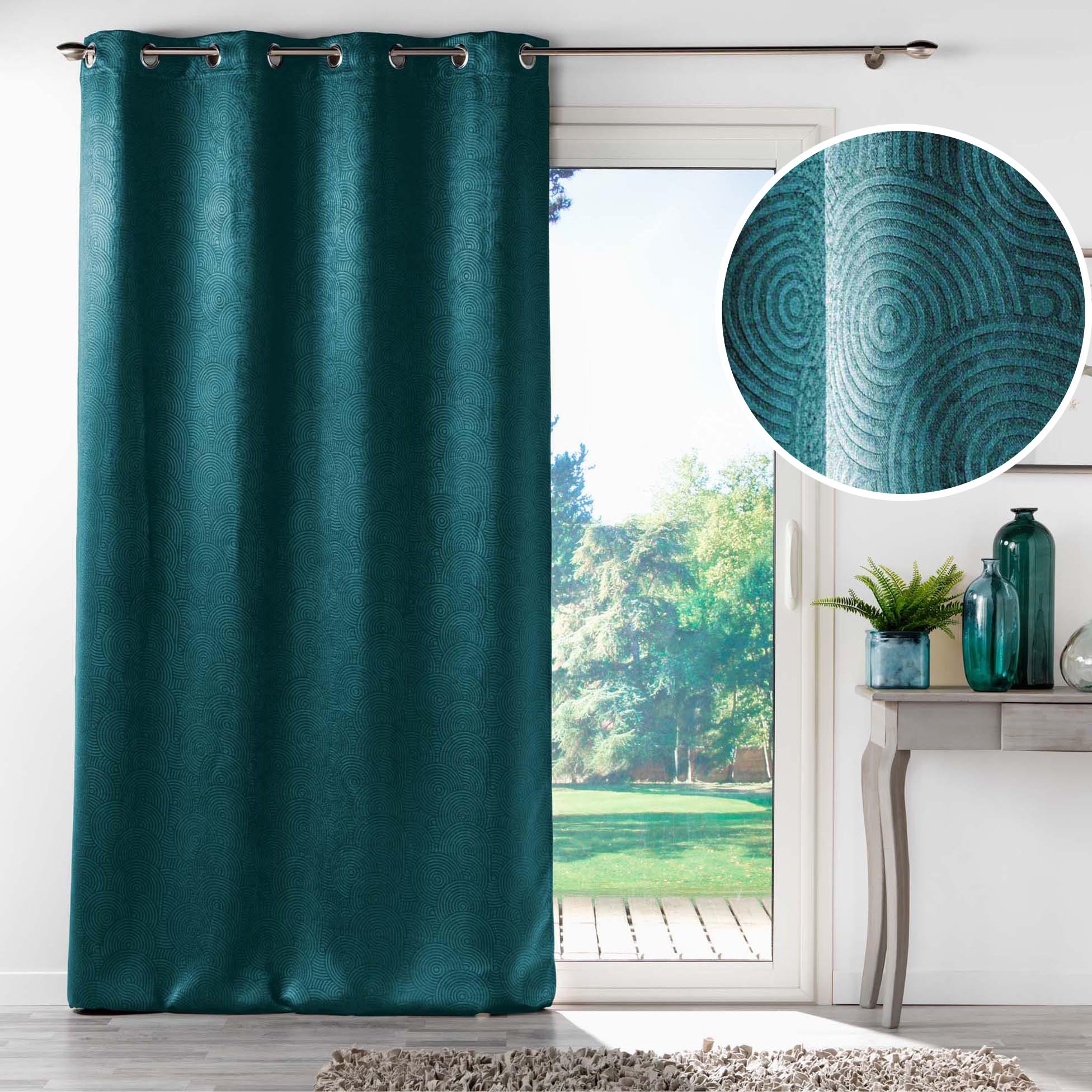 Rideau à œillets 135 x 240 cm – Occultant velours frappé Anthéa Pétrole