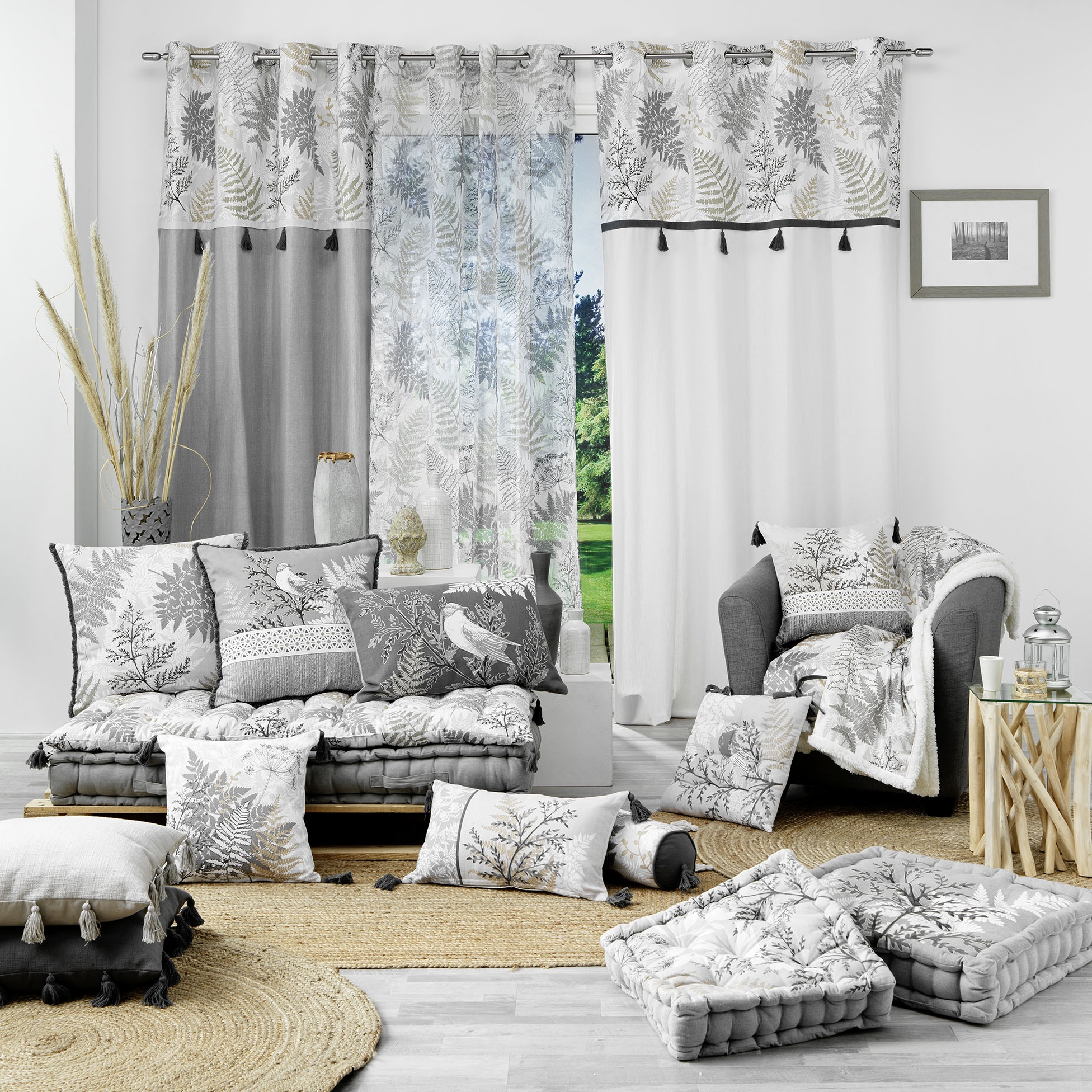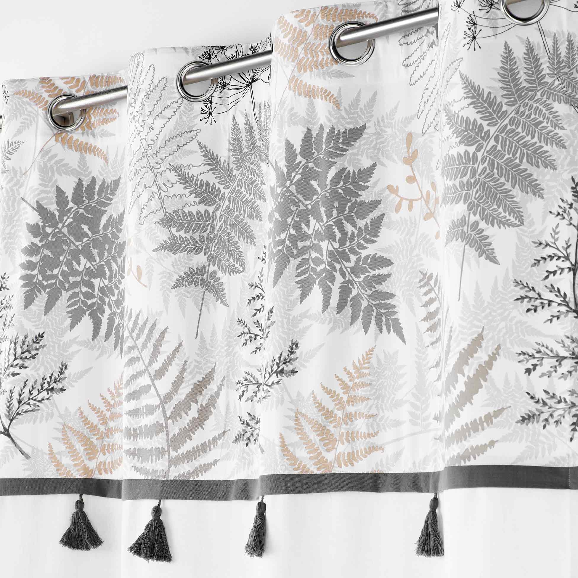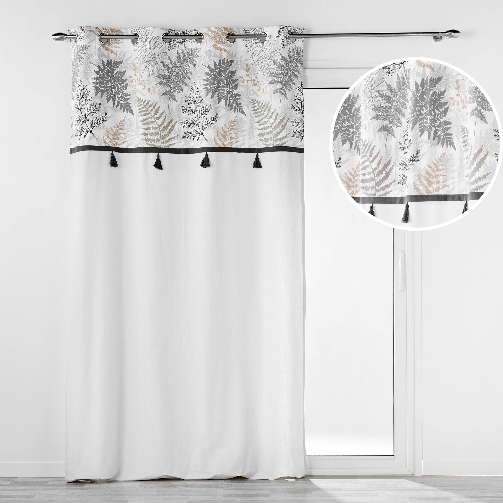 Apportez une touche de poésie naturelle à votre intérieur avec le rideau Mélisandre, mêlant élégance discrète et motifs végétaux délicats. Son top imprimé de feuilles stylisées dans des teintes douces et naturelles est subtilement rehaussé par une rangée de pompons noirs contrastés, apportant du relief et du raffinement à votre décoration.