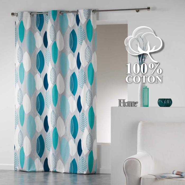 Rideau à œillets – 140 x 240 cm – Coton imprimé Leafy Bleu