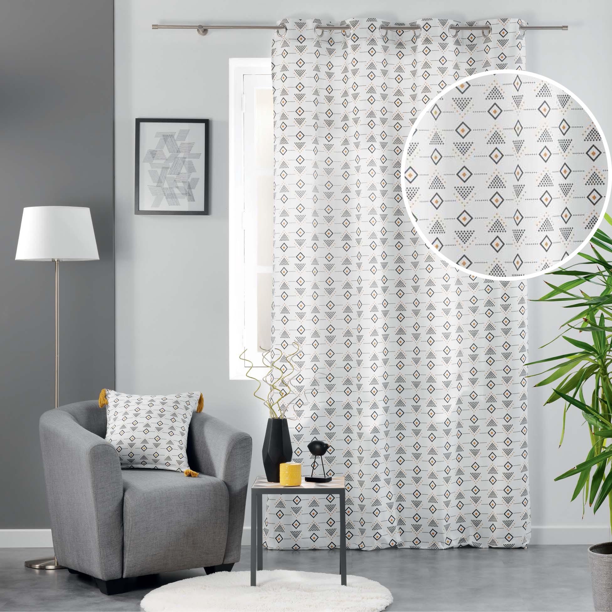 Apportez une touche graphique et moderne à votre décoration intérieure avec le rideau Letiko. Conçu en coton, il séduit par son imprimé géométrique élégant en noir et jaune sur fond blanc, idéal pour dynamiser une pièce tout en restant sobre et lumineux. Facile à poser grâce à ses œillets métalliques, ce rideau combine style et praticité.