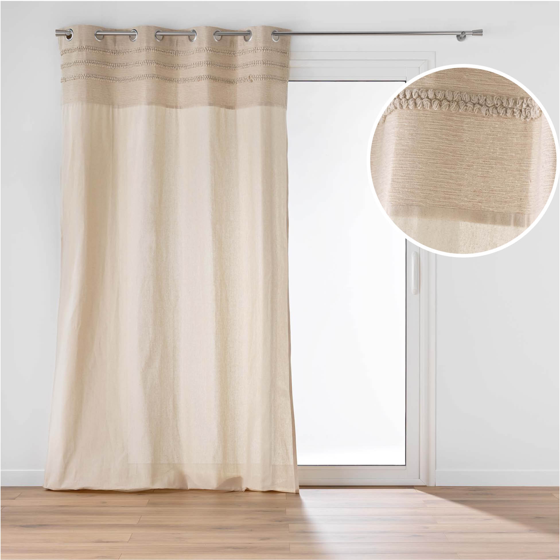 Rideau à œillets 140 x 240 cm – Coton/Polyester – Top fantaisie brodé – Modèle Hilary
