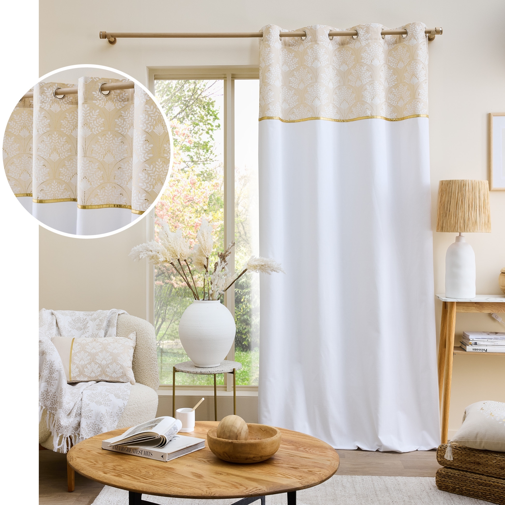 Apportez un style raffiné et élégant à votre intérieur avec le rideau Majestia. Composé d’un mélange coton/polyester, il combine douceur, légèreté et résistance. Son top imprimé métallisé et sa bande dorée ajoutent une touche de luxe subtile qui rehausse votre décoration.