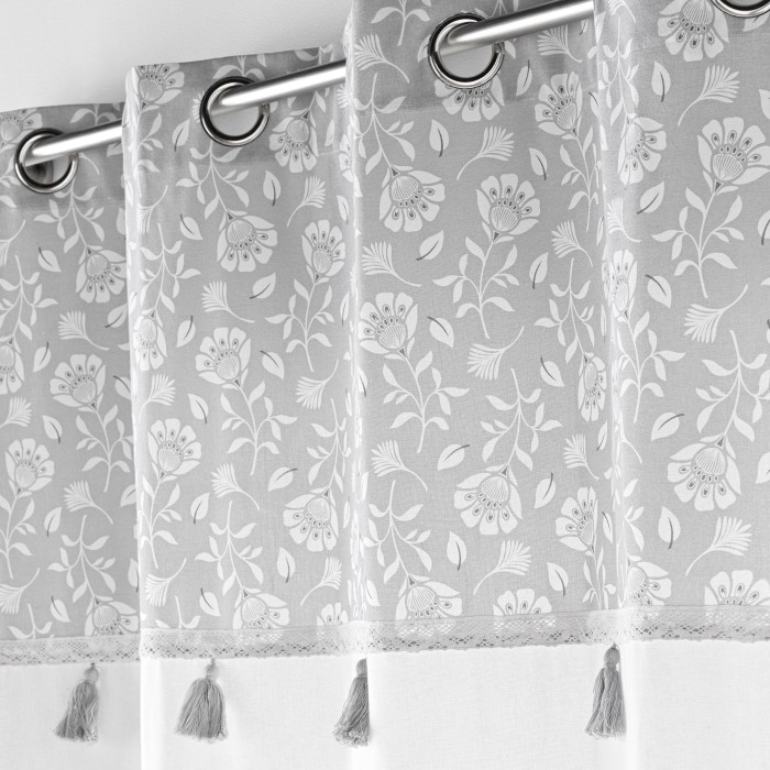 Rideau a oeillets 140 x 240 cm coton/polyester+top imp+pompon flavie Sans