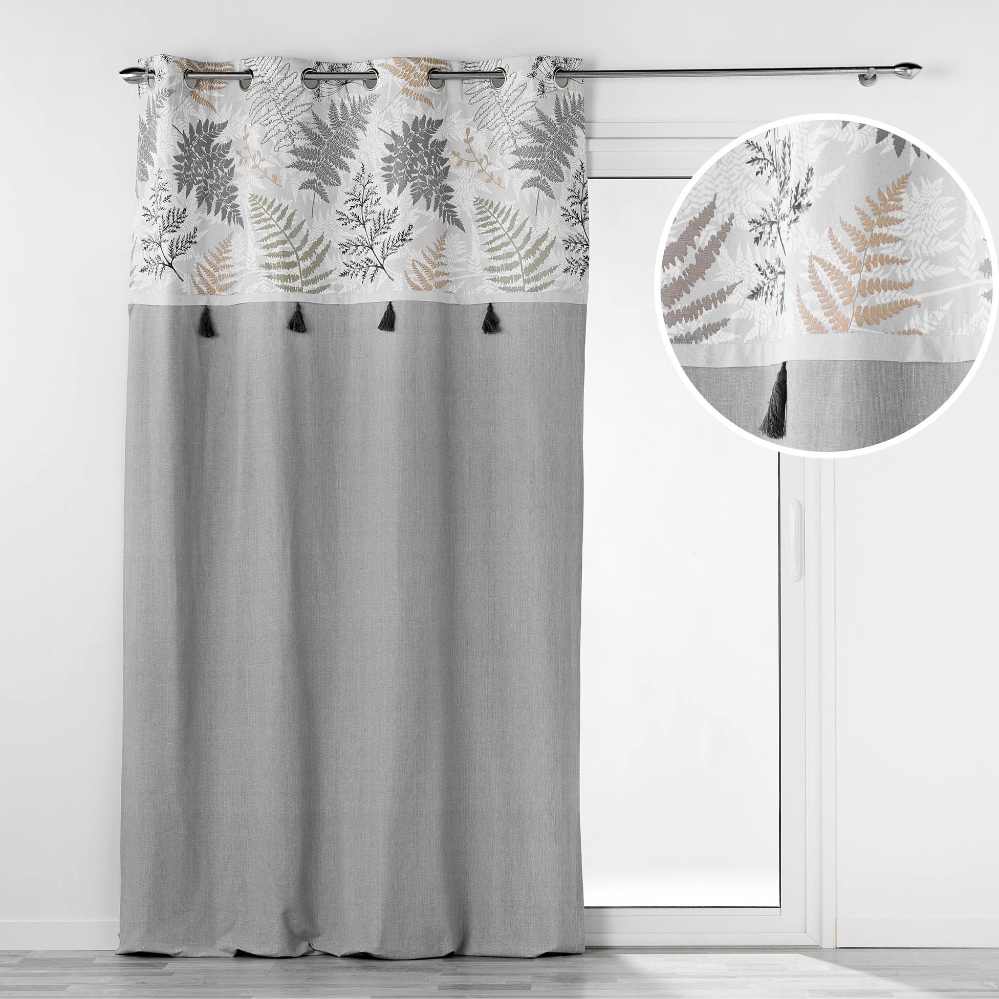 Rideau à Œillets 140 x 240 cm – Coton + Top Feuillage et Pompons MELISANDRE Taupe