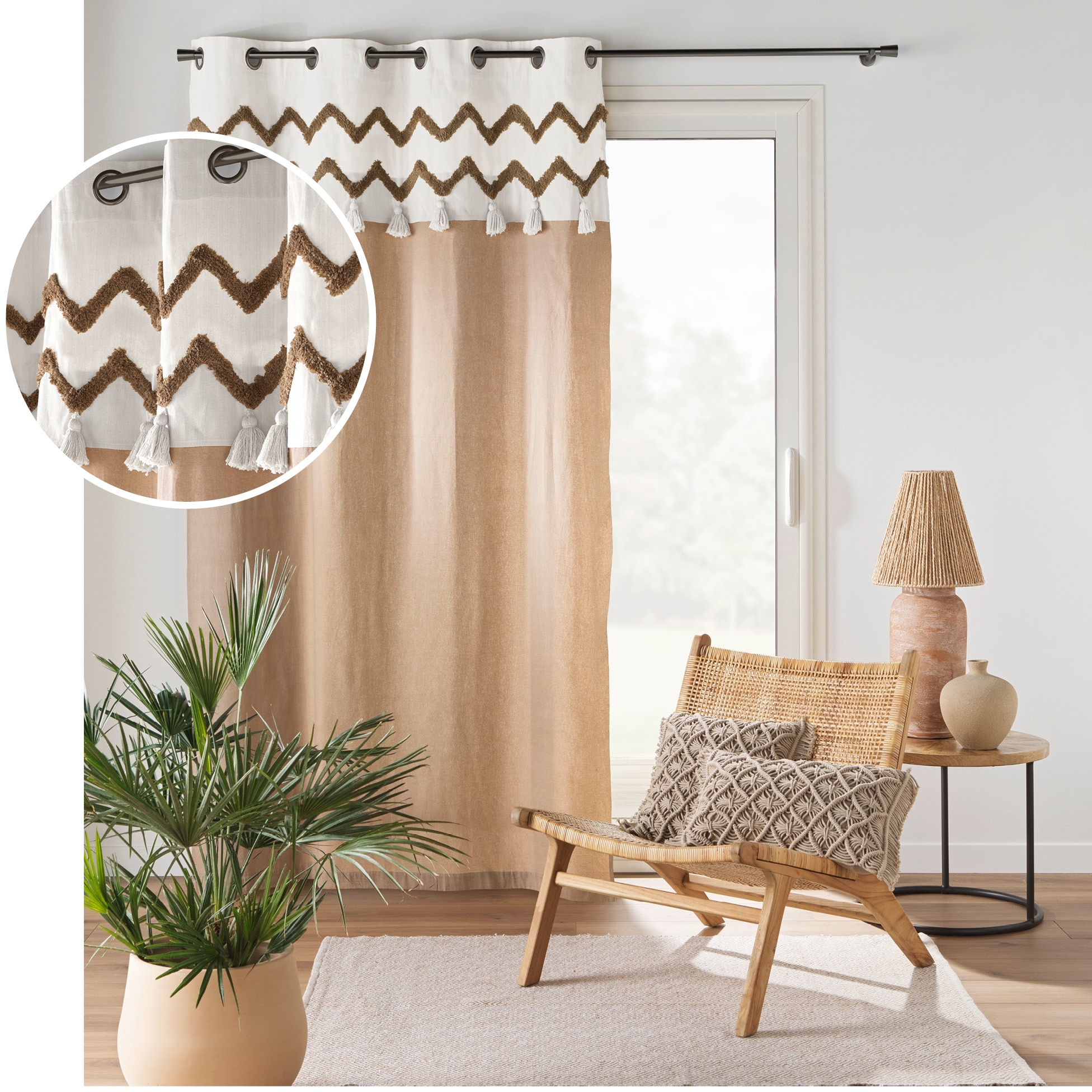 Apportez une touche ethnique et chaleureuse à votre décoration avec le rideau Azari. Fabriqué en coton de qualité, ce modèle arbore un design uni rehaussé d’un top tufté en motifs zigzag, complété par des pompons décoratifs élégants. Son style unique combine modernité et tradition pour sublimer votre intérieur.