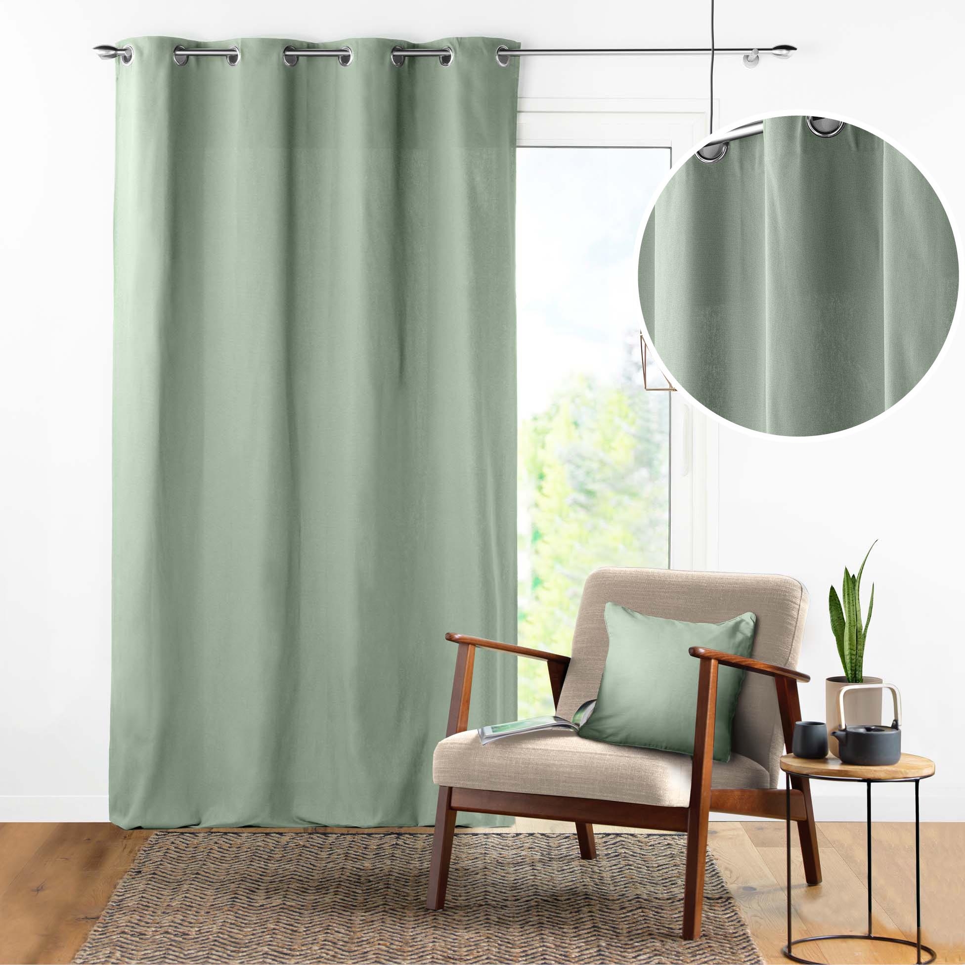 Rideau à Œillets 140 x 240 cm – Coton Uni Panama – Sauge