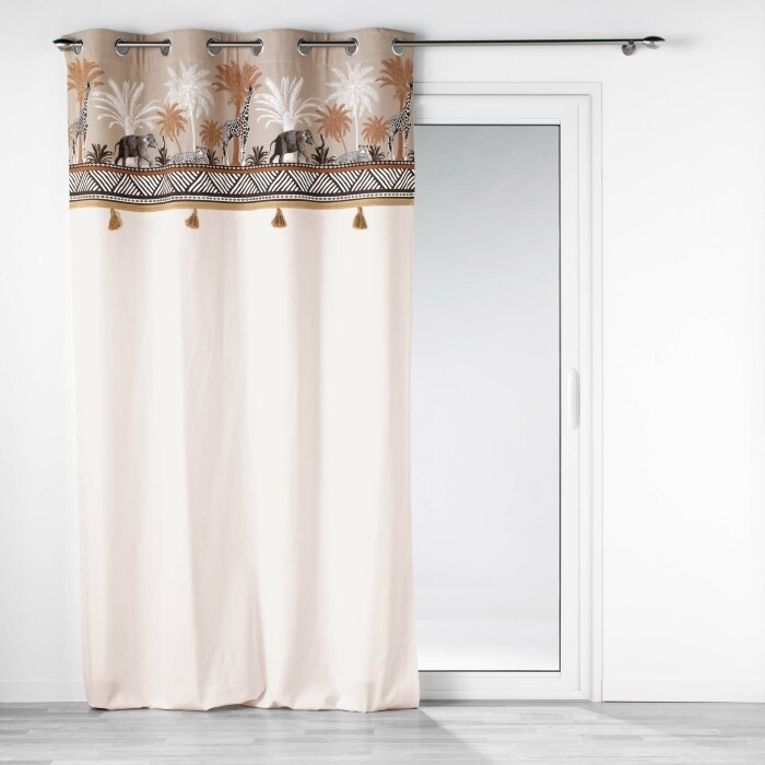 Rideau a oeillets 140 x 240 cm en coton + haut impirmé Keya lodge Taupe