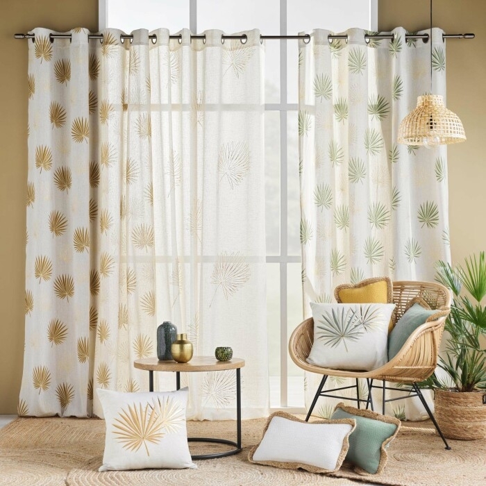 Ajoutez une touche d'exotisme et de fraîcheur à votre intérieur avec ce rideau à œillets au design tropical. Son imprimé de feuilles luxuriantes sur un fond clair crée une ambiance apaisante et moderne, idéale pour sublimer vos pièces.