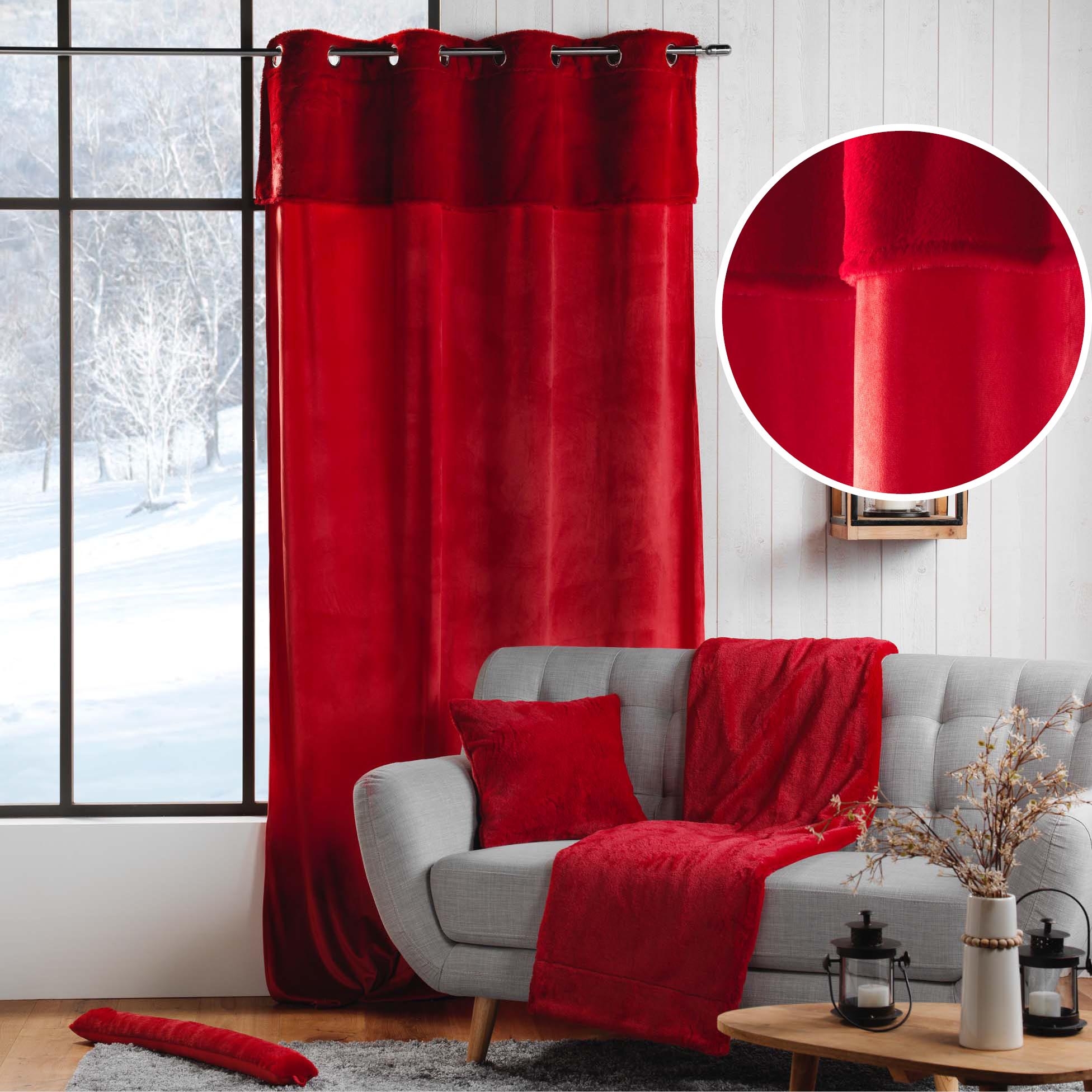 Rideau à Œillets 140 x 240 cm – Velours et Imitation Fourrure – Caresse Rouge