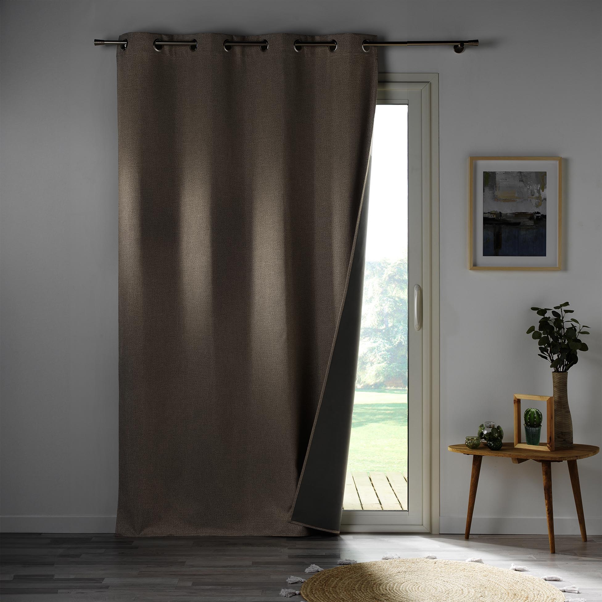 Rideau à Œillets 140 x 260 cm – 100 % Occultant / Chambray Uni – Crépuscule Beige