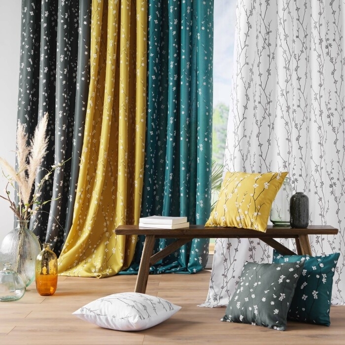 Rideau a oeillets 140 x 260 cm polyester imprime appliqué Sakura Jaune