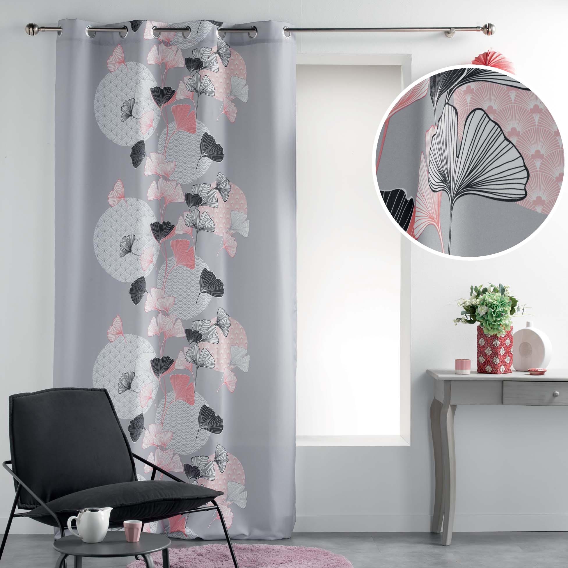 Rideau à Œillets 140 x 260 cm – Polyester Imprimé Eden – Coloris Gris/Blush