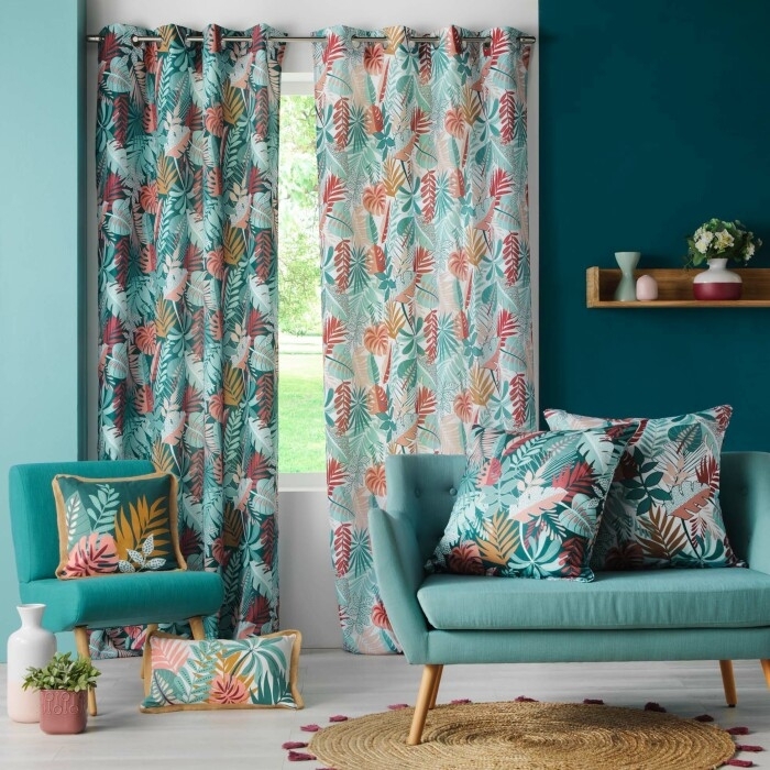 Rideau a oeillets 140 x 260 cm polyester imprimé Jacala Bleu
