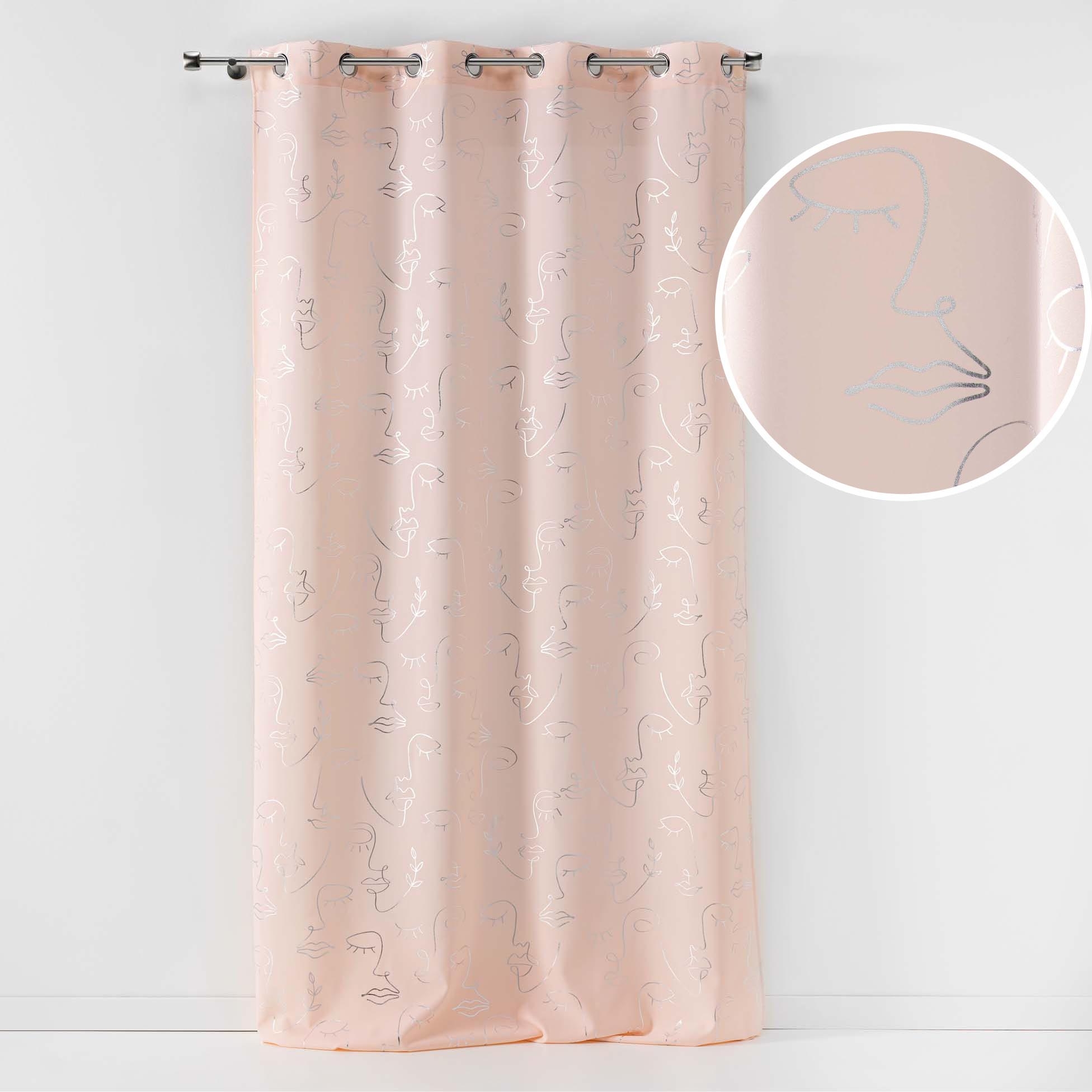 Rideau a oeillets 140 x 260 cm polyester imprime metallise arty line Rose/argent