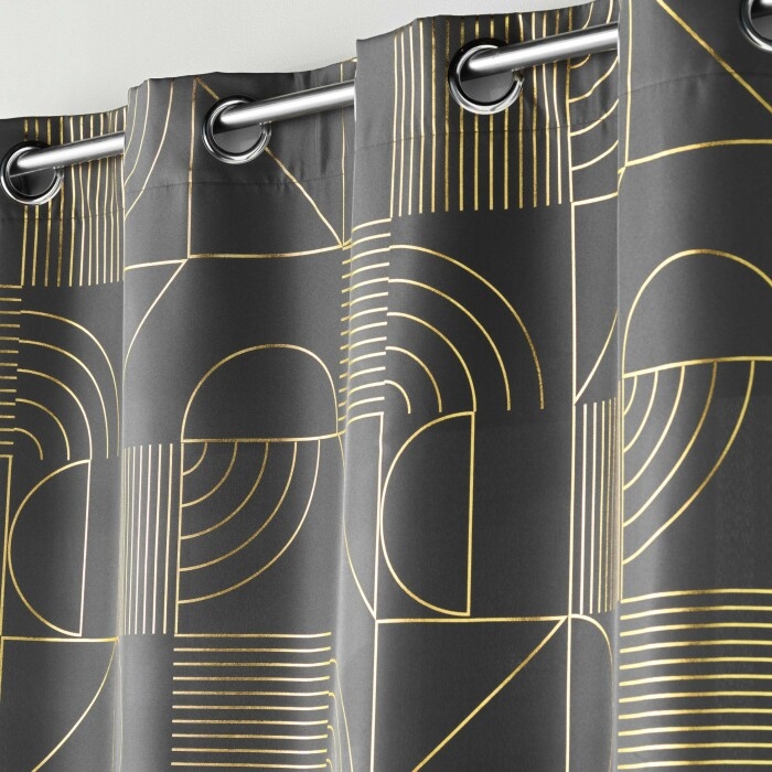 Rideau a oeillets 140 x 260 cm polyester imprime metallise lineor Anthracite/or