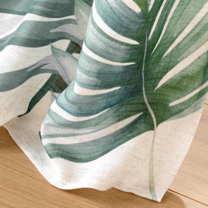 Ajoutez une touche d'exotisme et de fraîcheur à votre intérieur avec ce rideau à œillets au design tropical. Son imprimé de feuilles luxuriantes sur un fond clair crée une ambiance apaisante et moderne, idéale pour sublimer vos pièces.