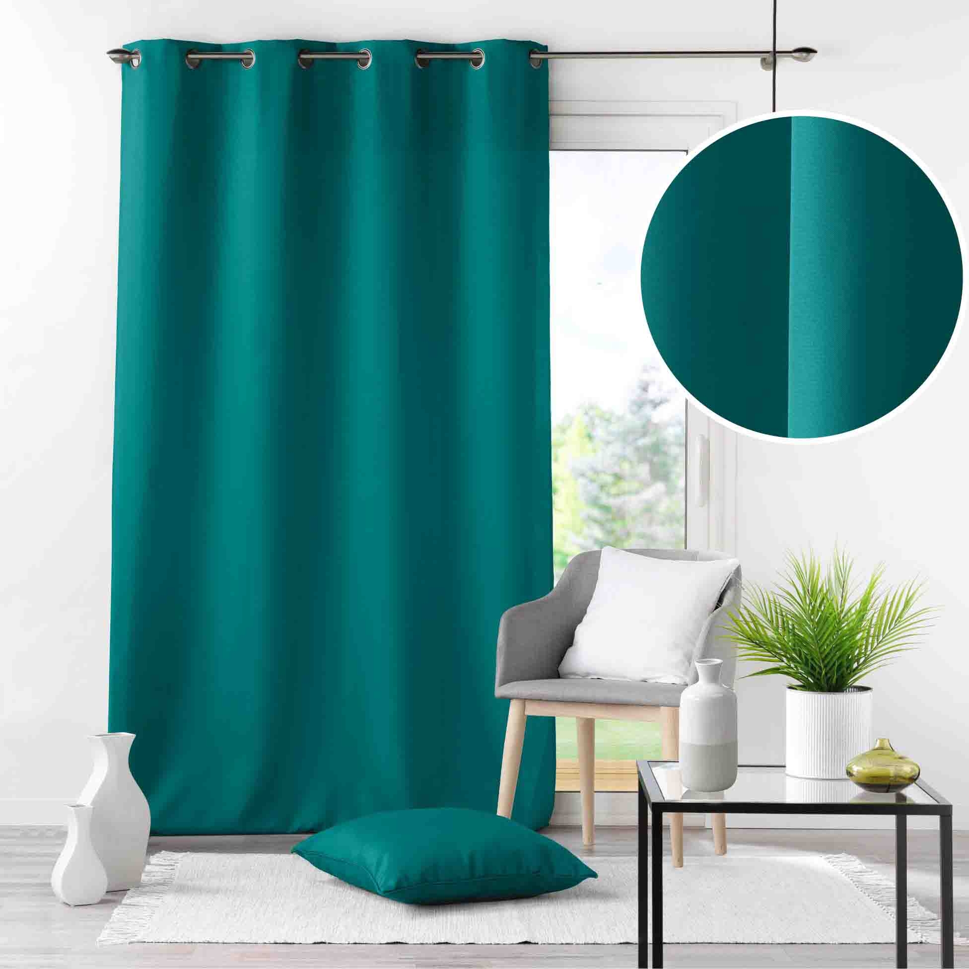 Rideau À Œillets 140 x 260 cm Polyester Uni Essentiel – Bleu Paon