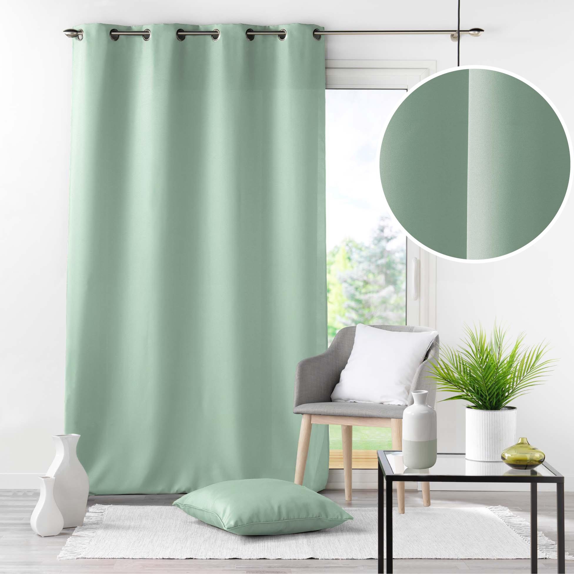 Rideau À Œillets 140 x 260 cm Polyester Uni Essentiel - Vert sauge