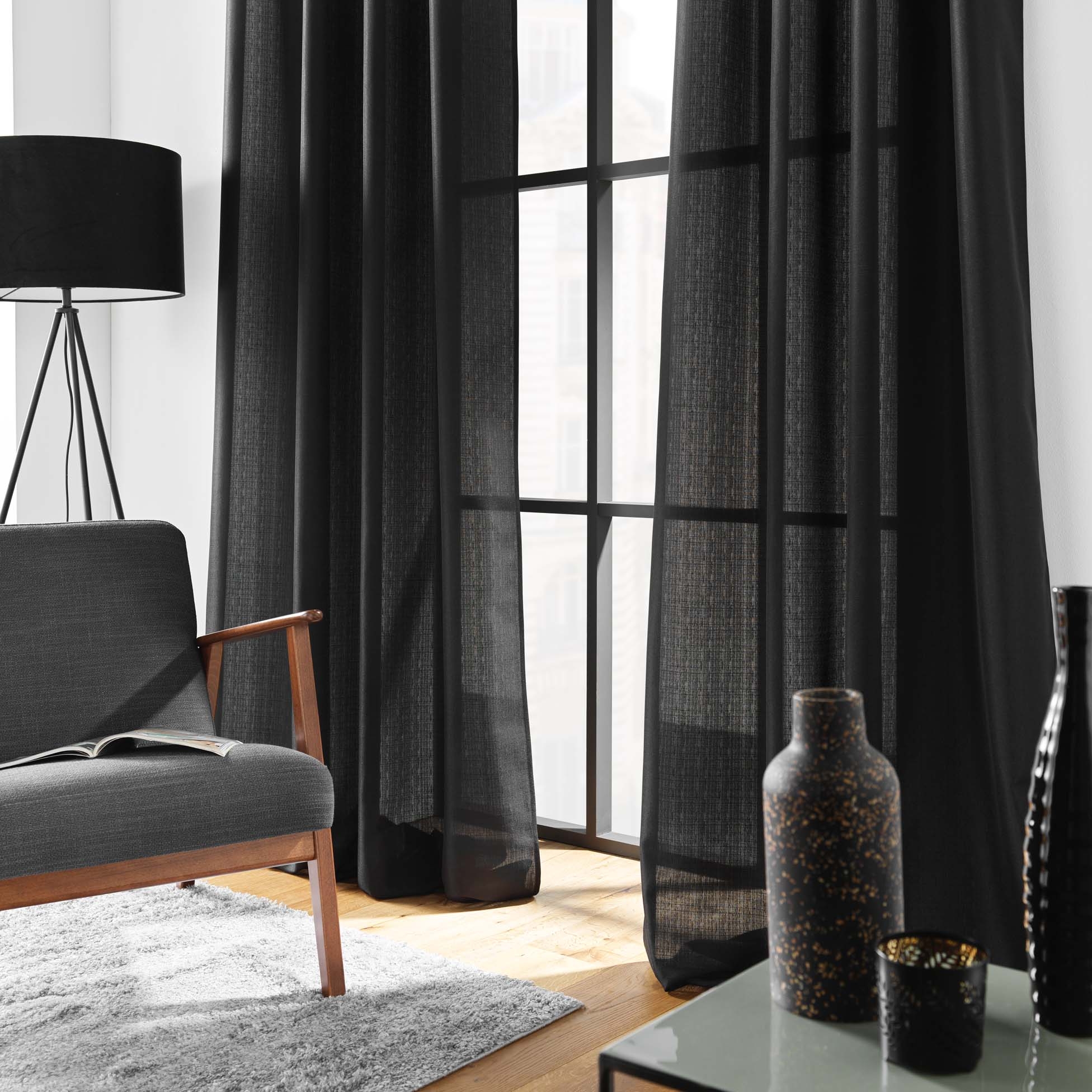 Rideau à œillets 140 x 260 cm – Polyester uni Soline – Noir