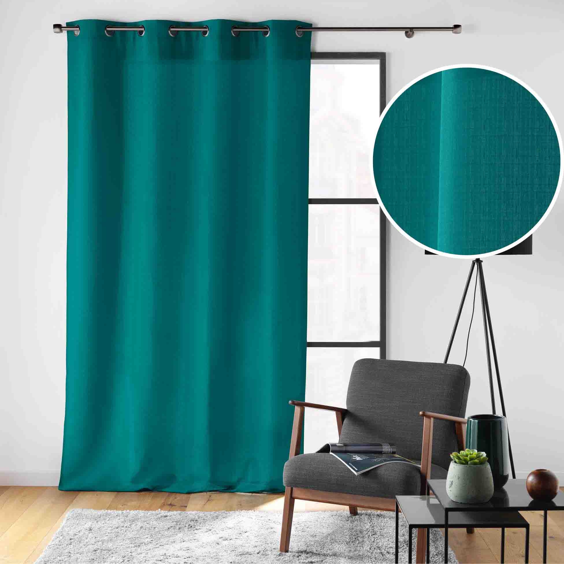 Rideau à œillets 140 x 260 cm – Uni Soline Bleu Paon