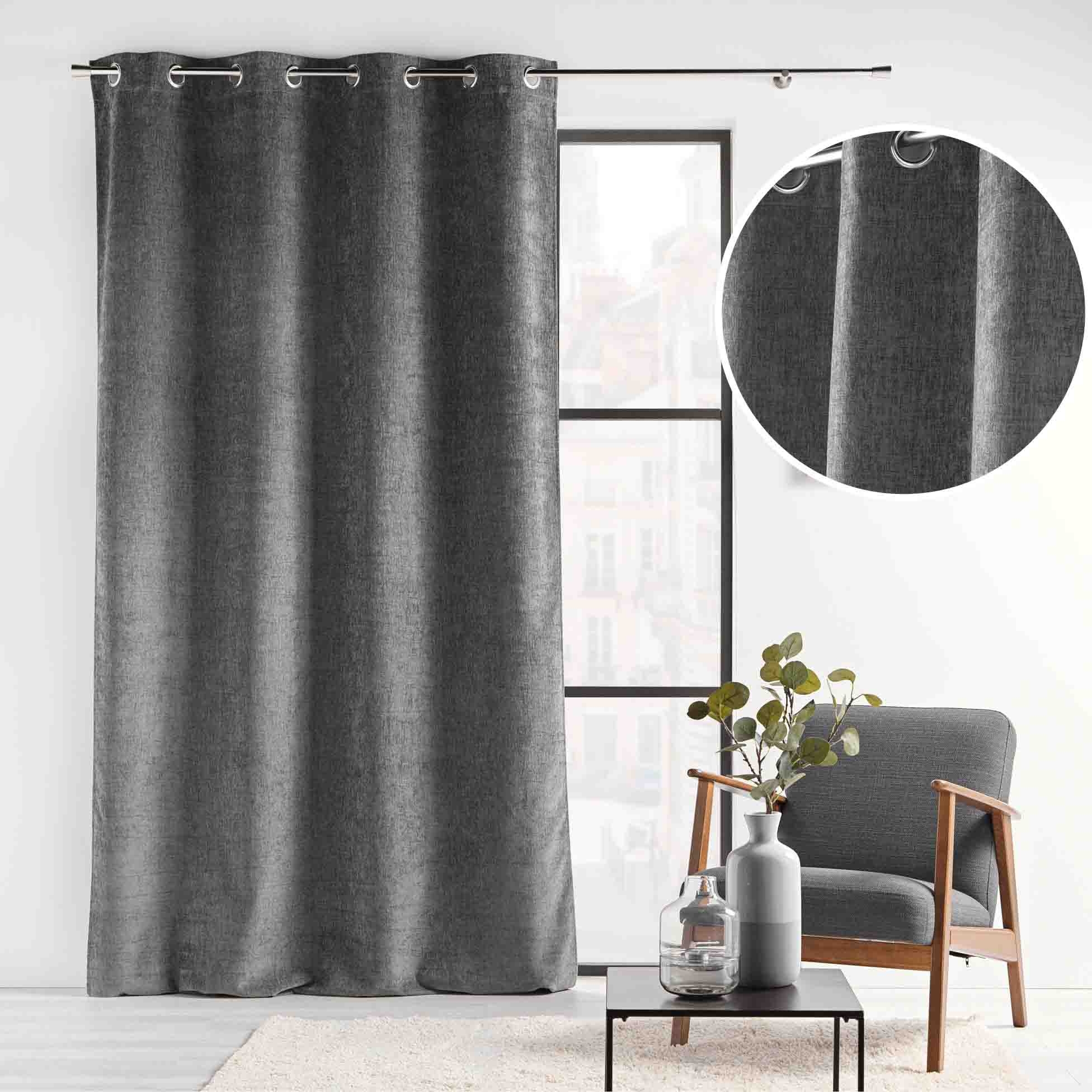 Rideau à œillets 140 x 260 cm – Velours à relief Verra Anthracite