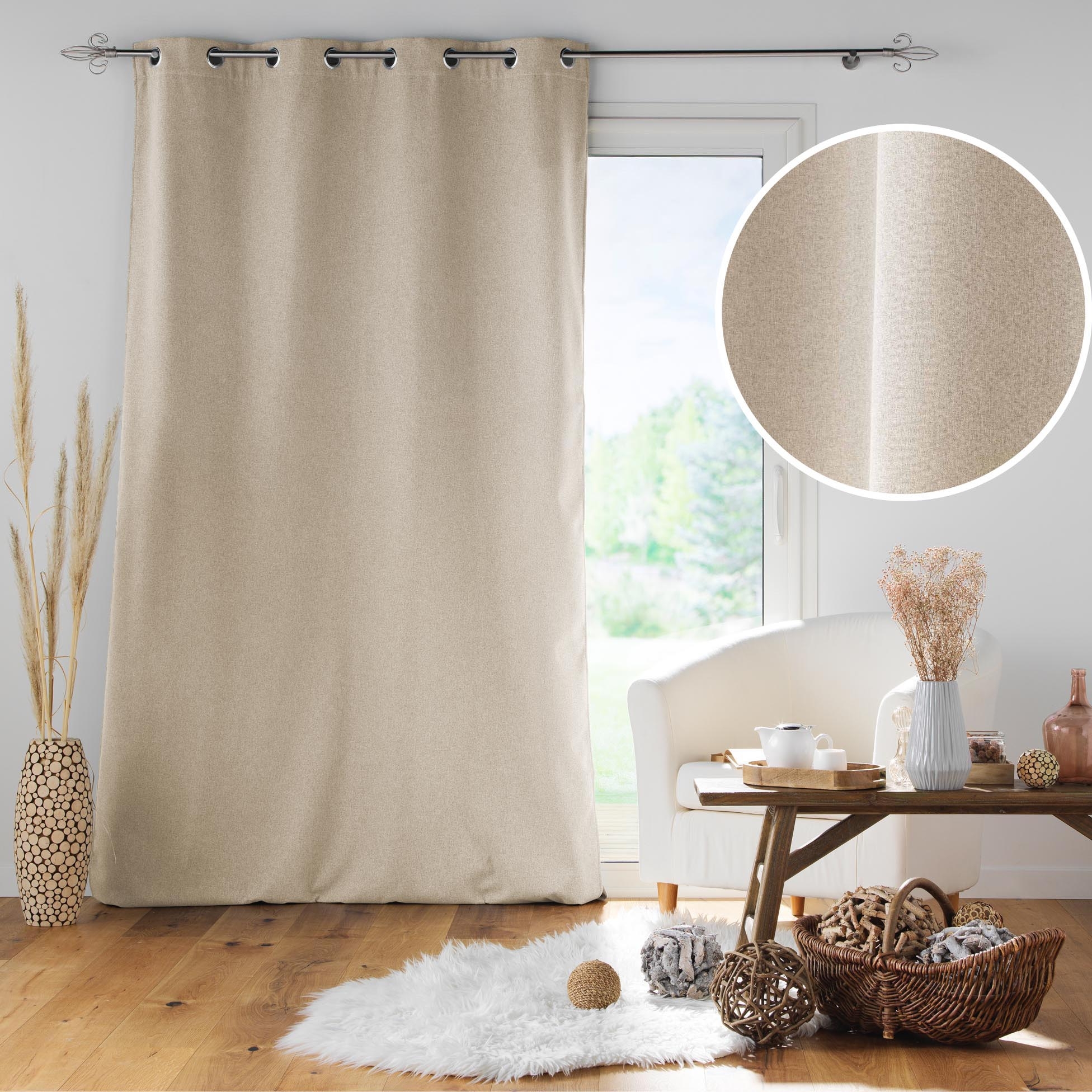 Rideau à Œillets Isolant Phonique et Thermique – Doublé Polaire – Jupiter Lin – 140 x 260 cm