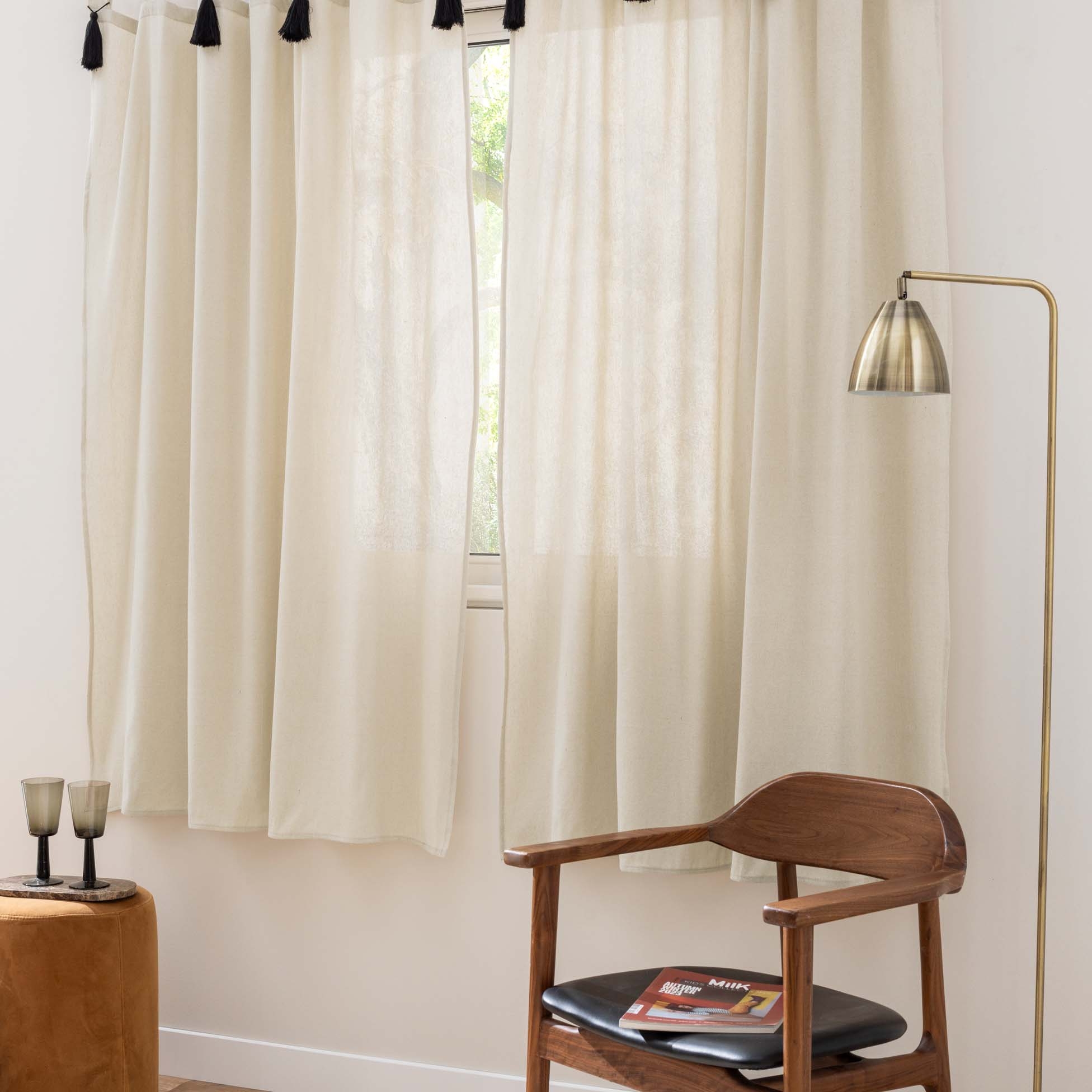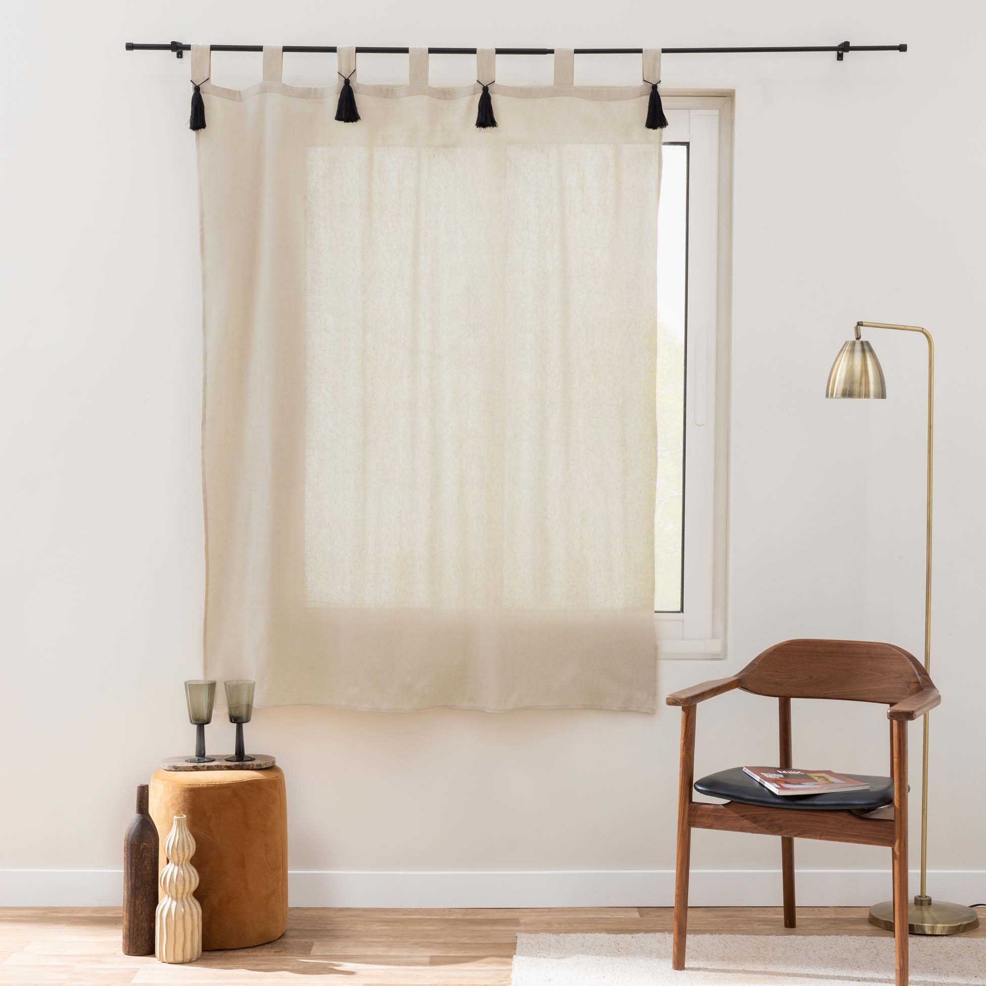 Apportez une touche bohème chic à votre intérieur avec le rideau CYRINE. Son tissu polycoton uni filtre délicatement la lumière tout en créant une atmosphère douce et chaleureuse. Les pompons noirs contrastés viennent sublimer l’ensemble et apportent un détail décoratif élégant et moderne.