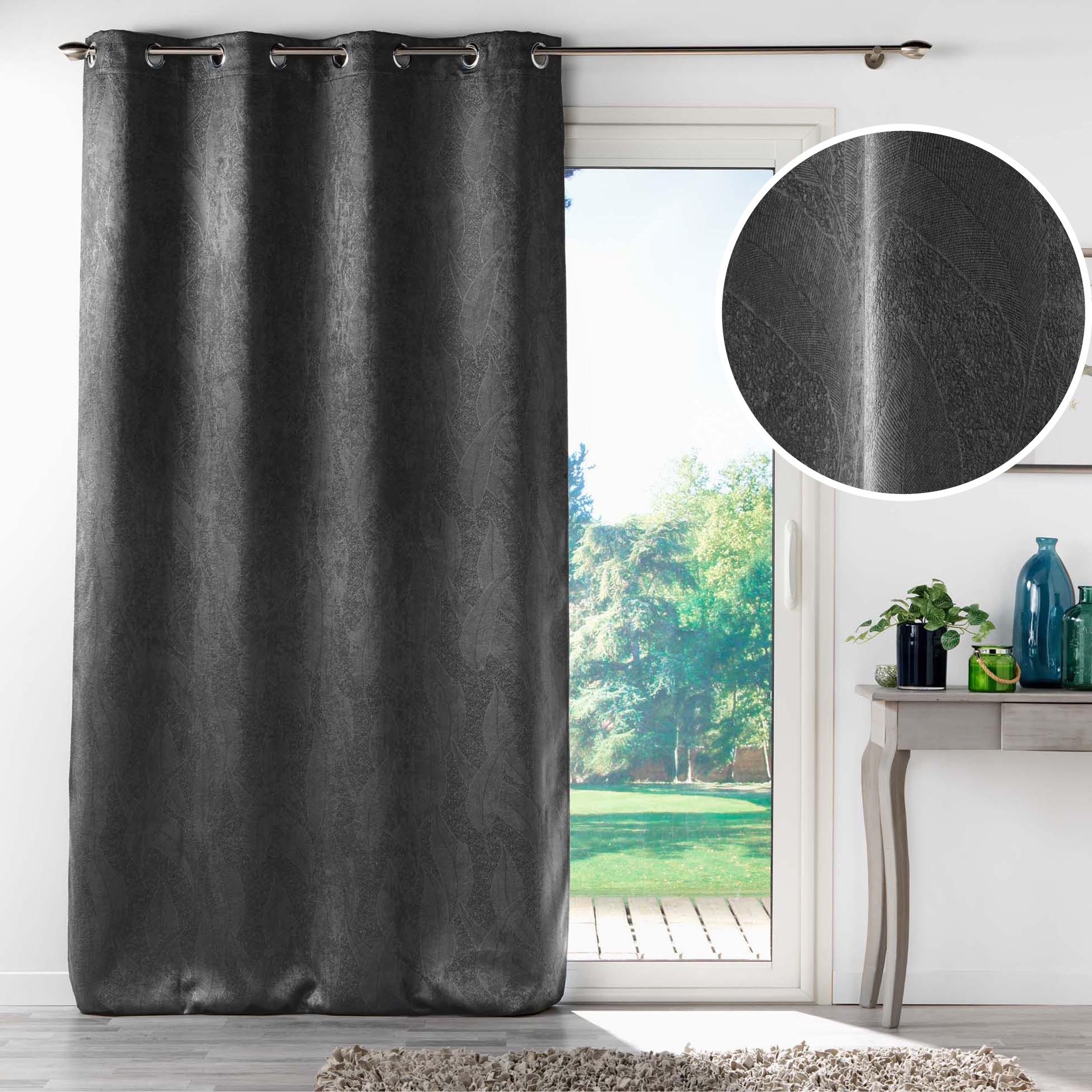 Rideau à œillets 135 x 280 cm – occultant – velours frappé Mélodie – grande hauteur - Anthracite