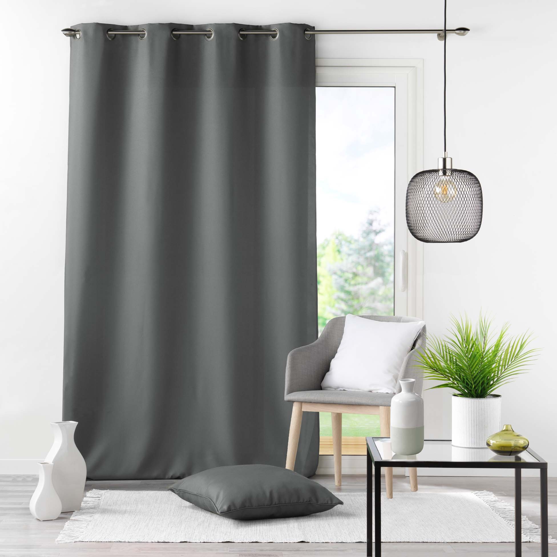 Rideau grande hauteur à œillets 140 x 280 cm – Polyester uni Essentiel Anthracite