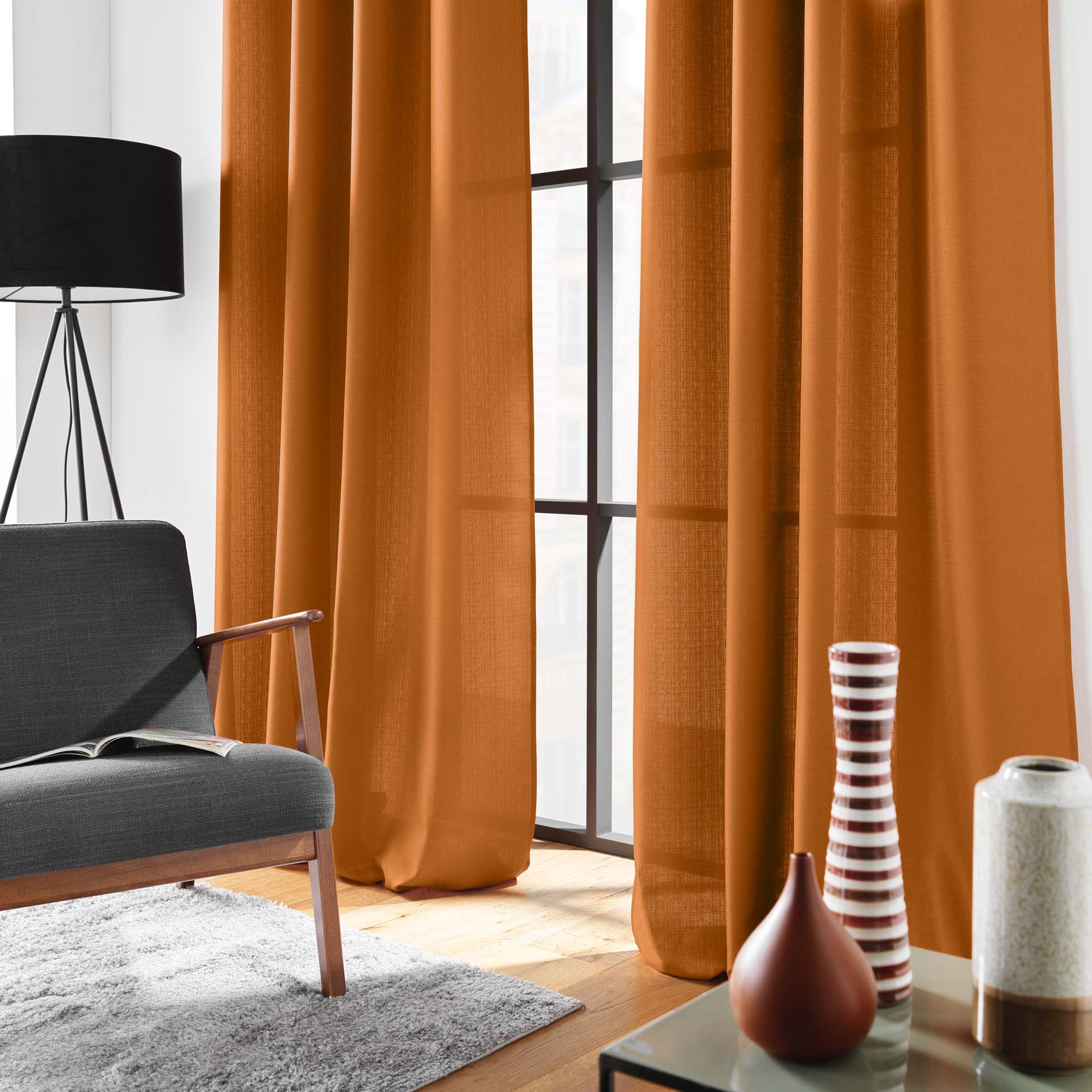 Rideau grande hauteur à œillets 140 x 280 cm – Polyester uni SOLINE – CAMEL