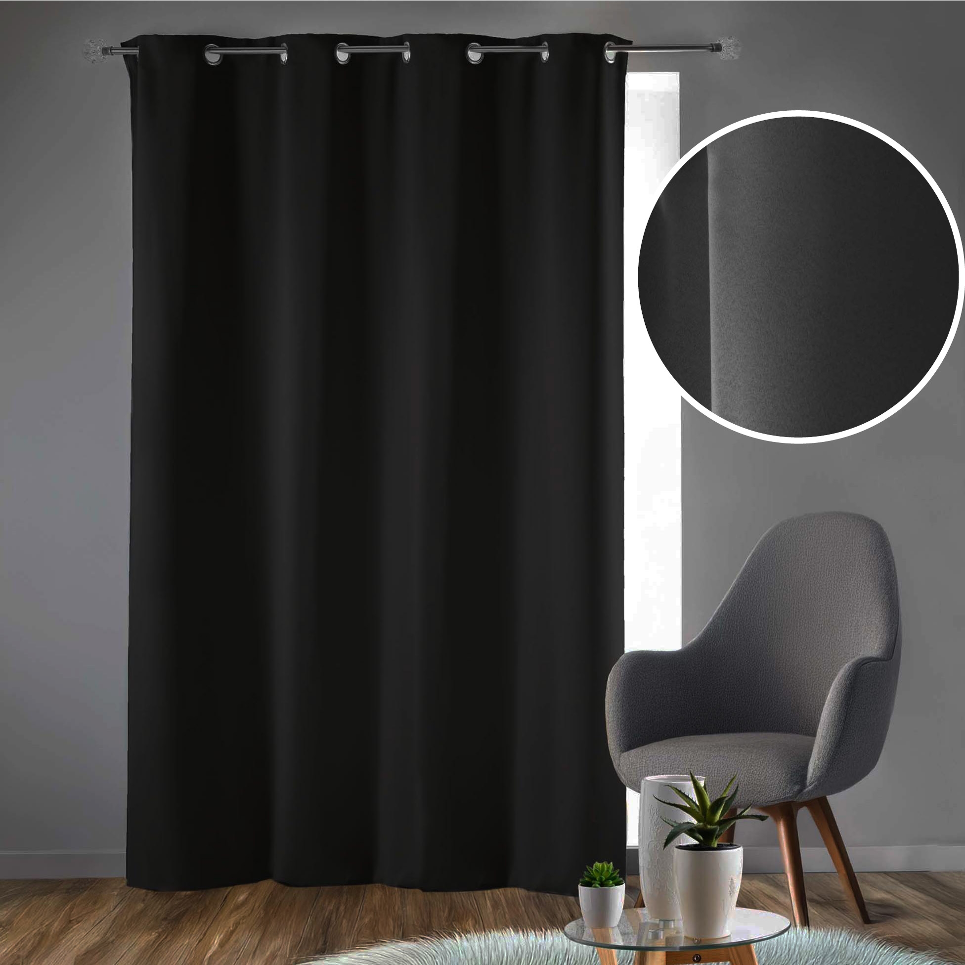 Rideau Occultant Grande Hauteur 135 x 280 cm – Uni Noir – À Œillets