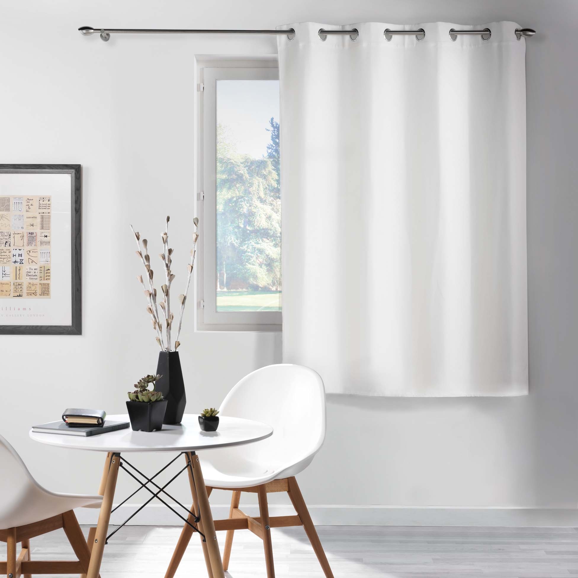 Rideau occultant à œillets 135 x 180 cm chambray uni Chinéa Blanc – petite hauteur